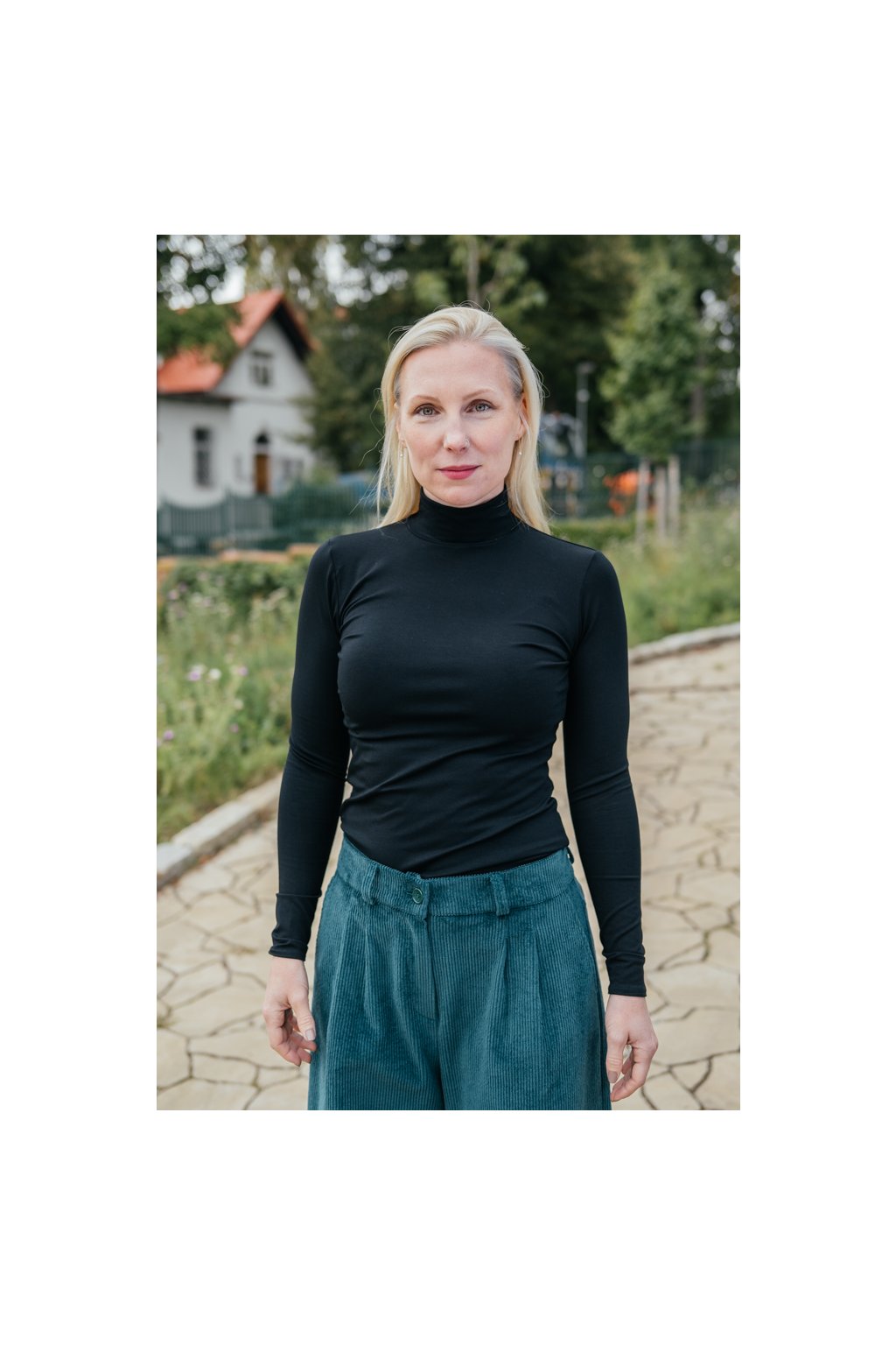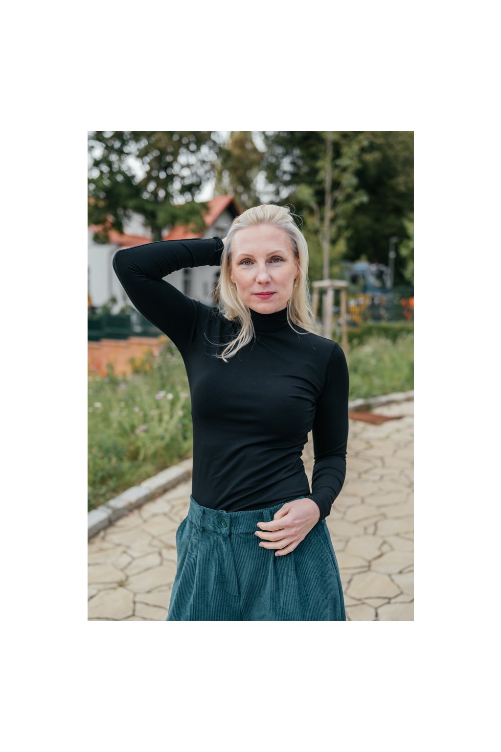 Kvalitní základní kousek šatníku, který se hodí k sukním i kalhotám. Modelka Katka (na fotce) k němu oblékla bambusovou sukni Zita.