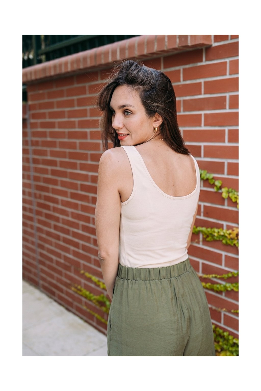 Výstřih a průramky tílka jsou zpevněné bambusovou paspulkou, aby neodstávaly.
