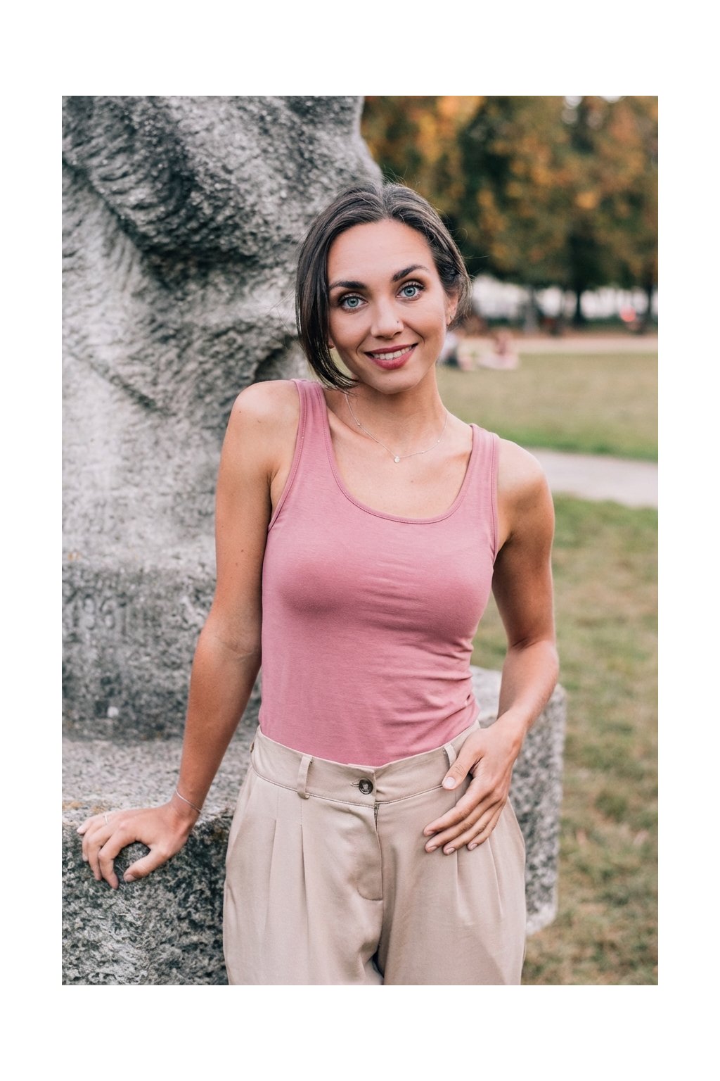 Výstřih a průramky tílka jsou zpevněné jemnou silikonovou gumičkou, aby neodstávaly.