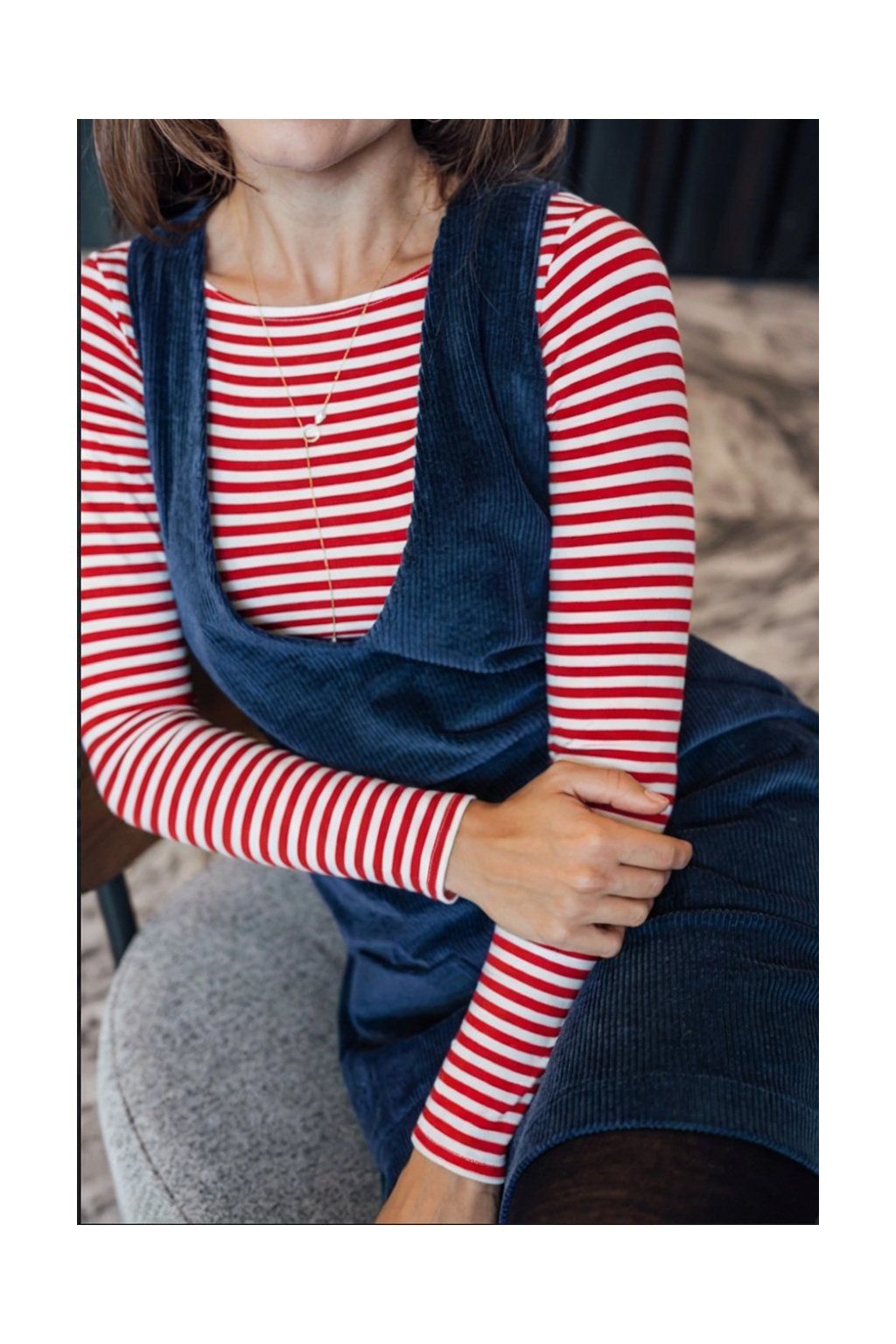 Bamboo tričko Amabile s dl. rukávem červeno-bílý tenčí proužek