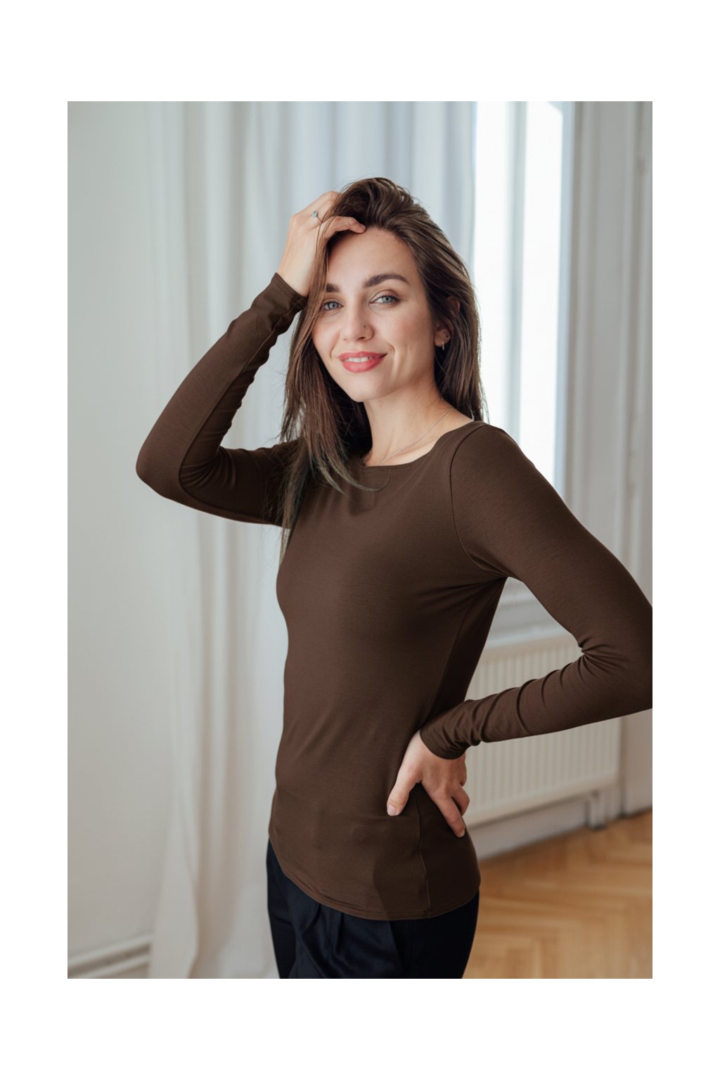 Bamboo tričko Amabile s dl. rukávem hnědé