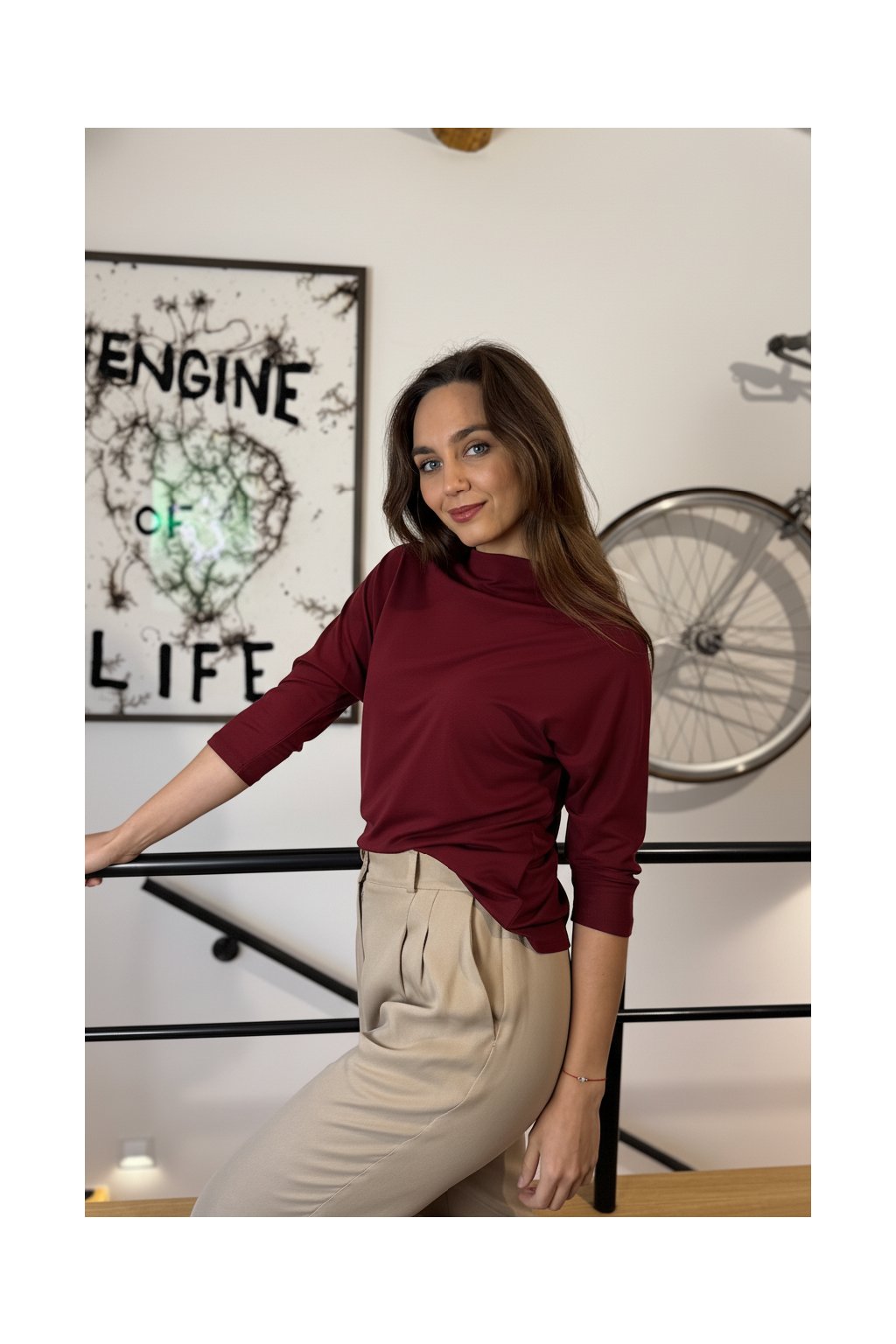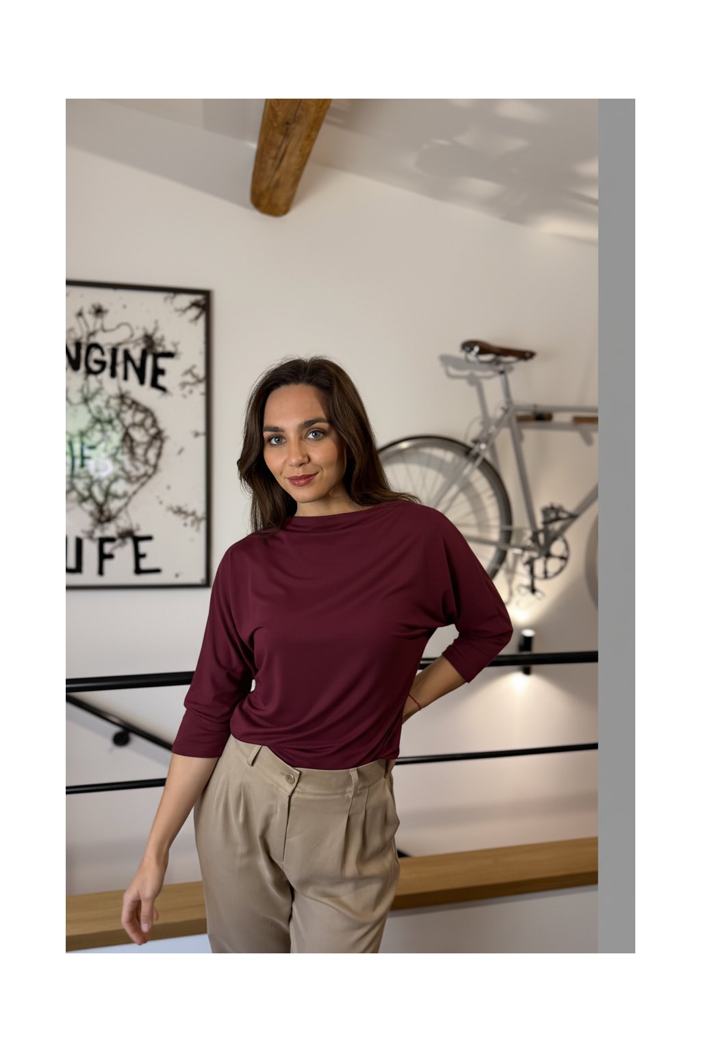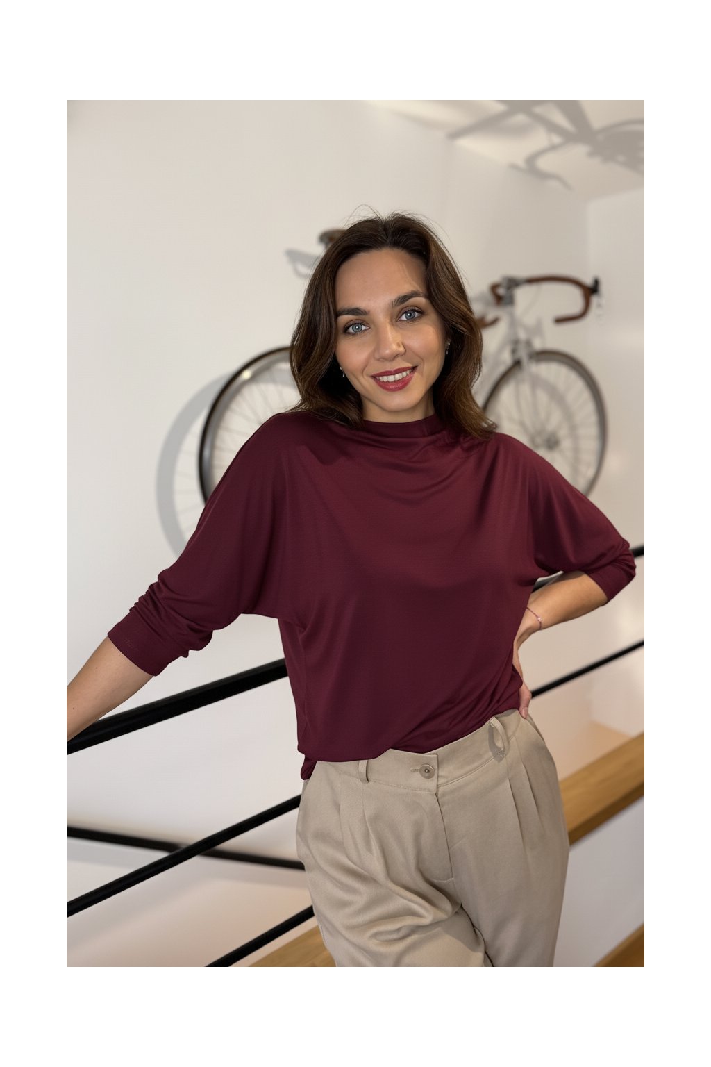 Bamboo tričko Aria s 3/4 rukávem vínovo-bordó