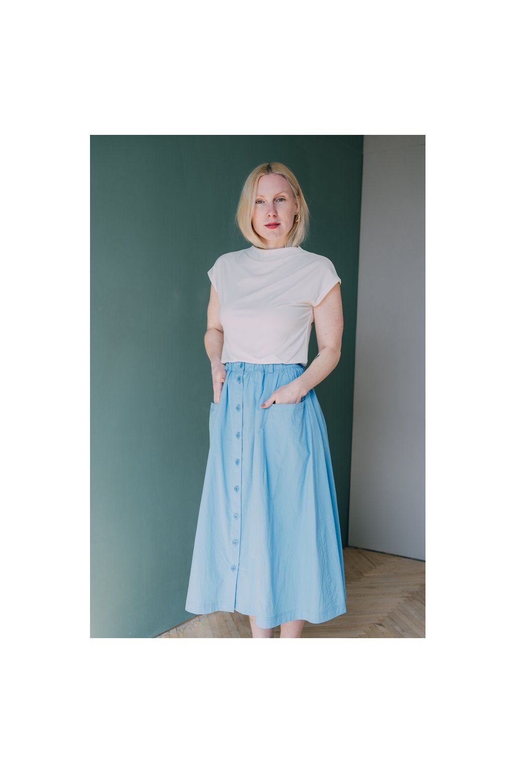 Nadčasové bambusové tričko volnějšího střihu s přinechaným stojáčkem.