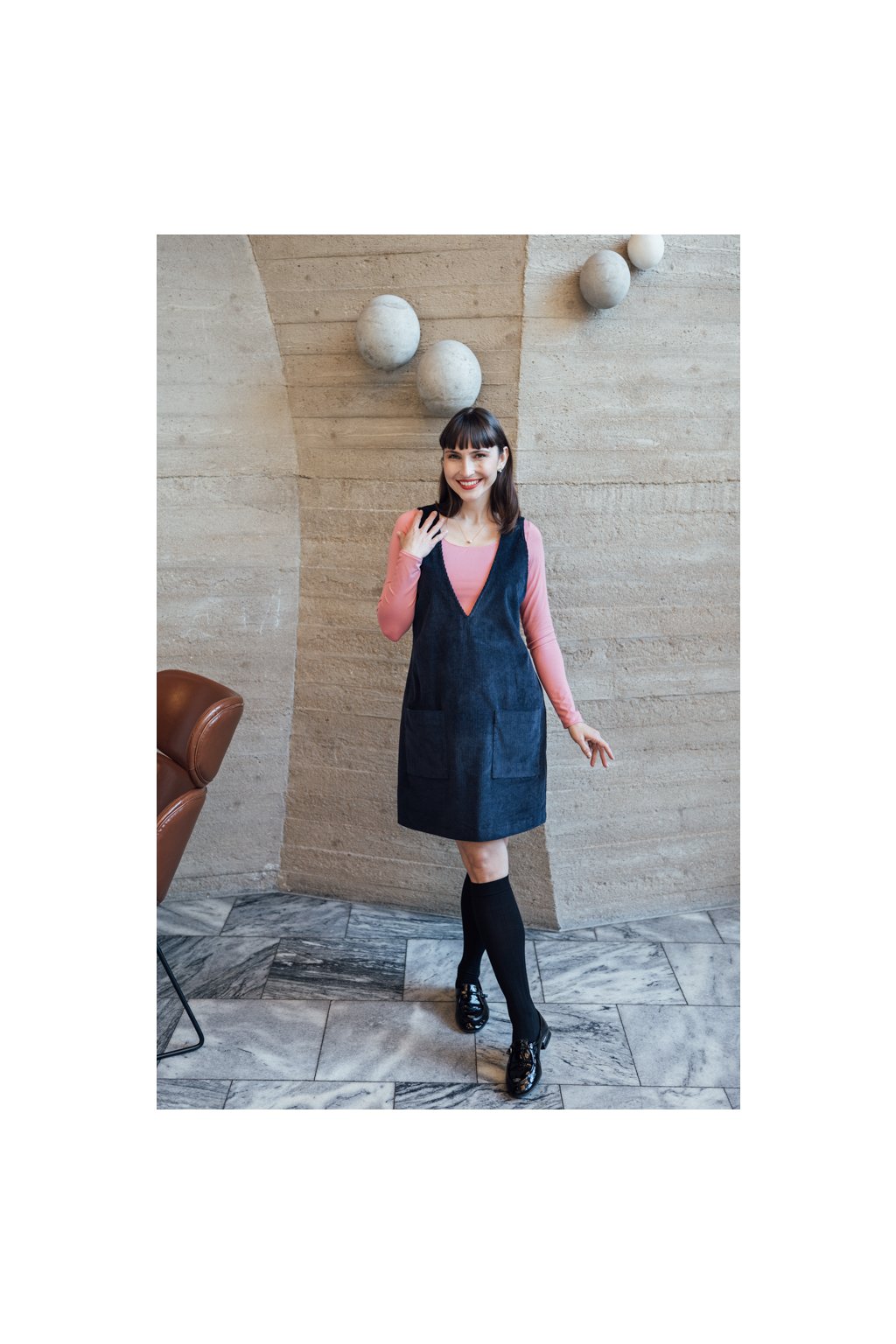 Do výstřihu našíváme jemnou silikonovou gumičku, aby hezky držel a neodstával. Díky tomu můžeme nechat výstřih čistý a není třeba ho nijak lemovat.