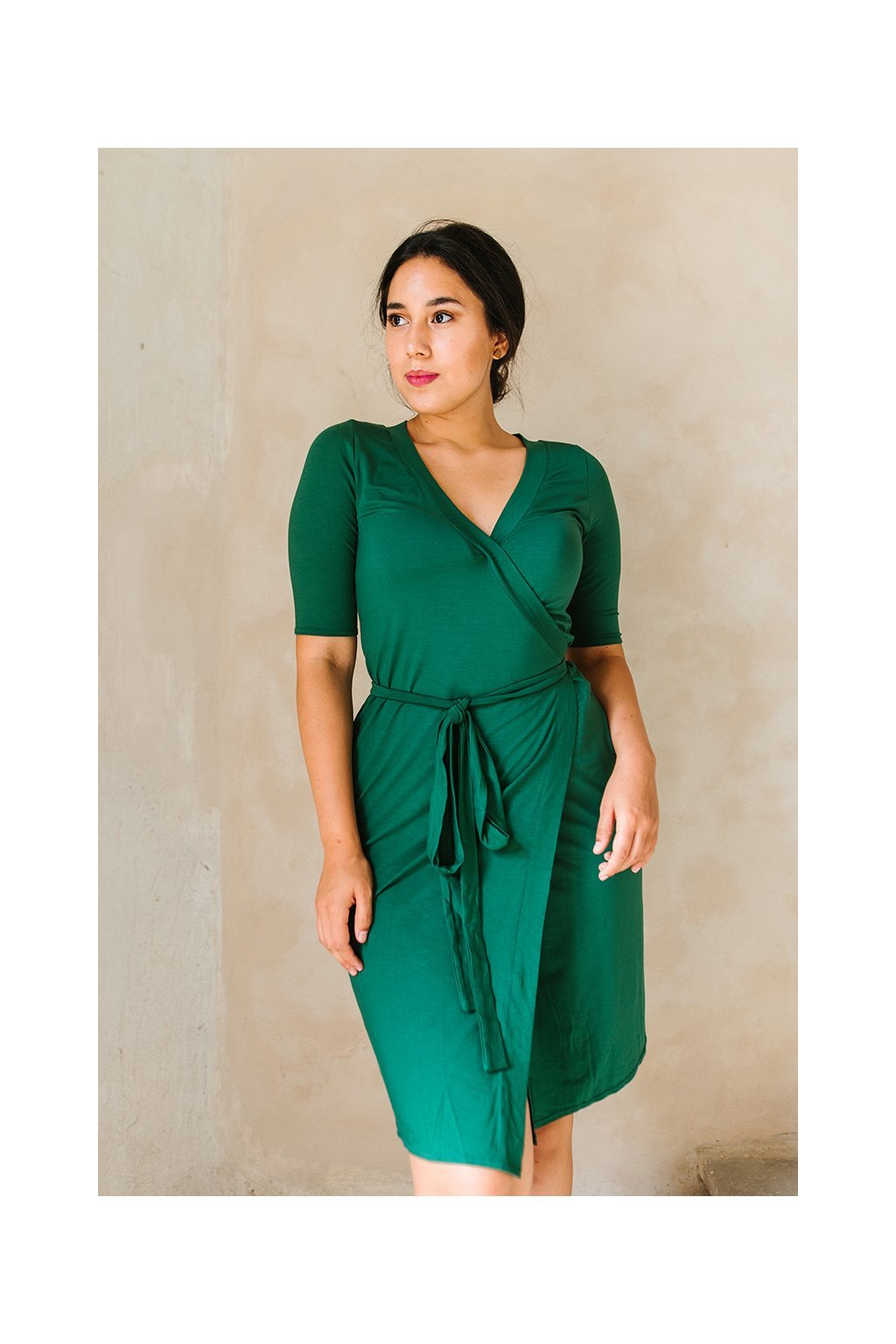 Bambusové zavinovací šaty Meda tmavě zelené, nižší gramáž, rukáv po loket