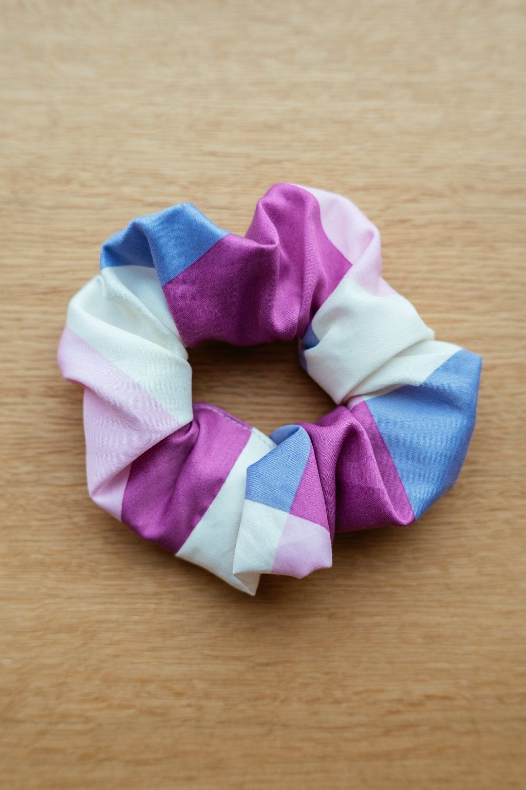 Bavlněná gumička scrunchie fialovo - růžové kostky