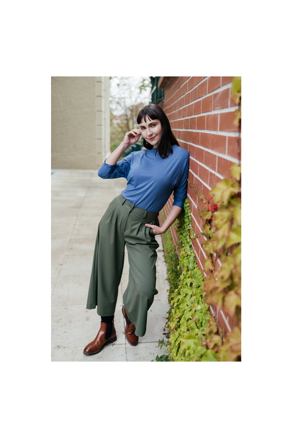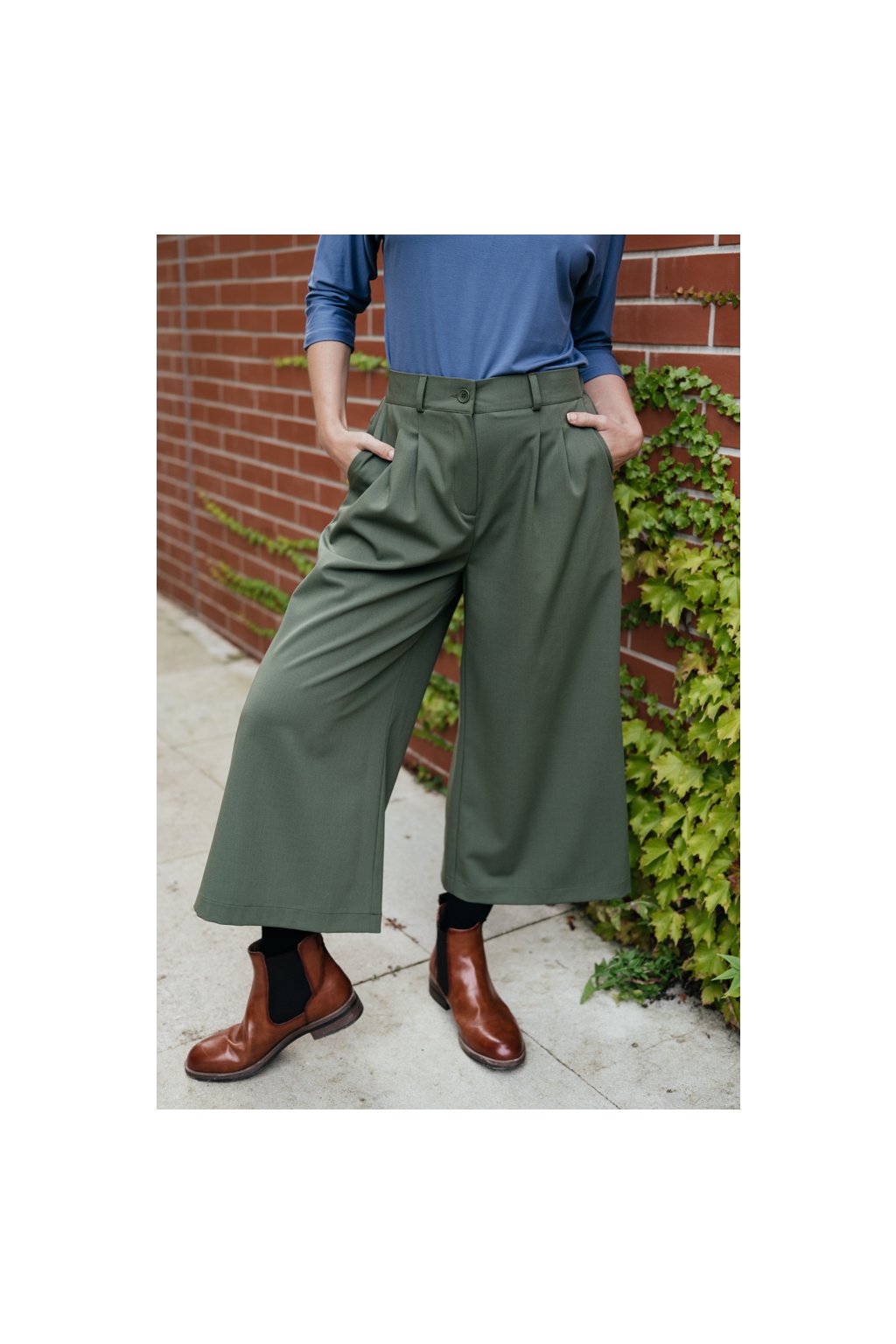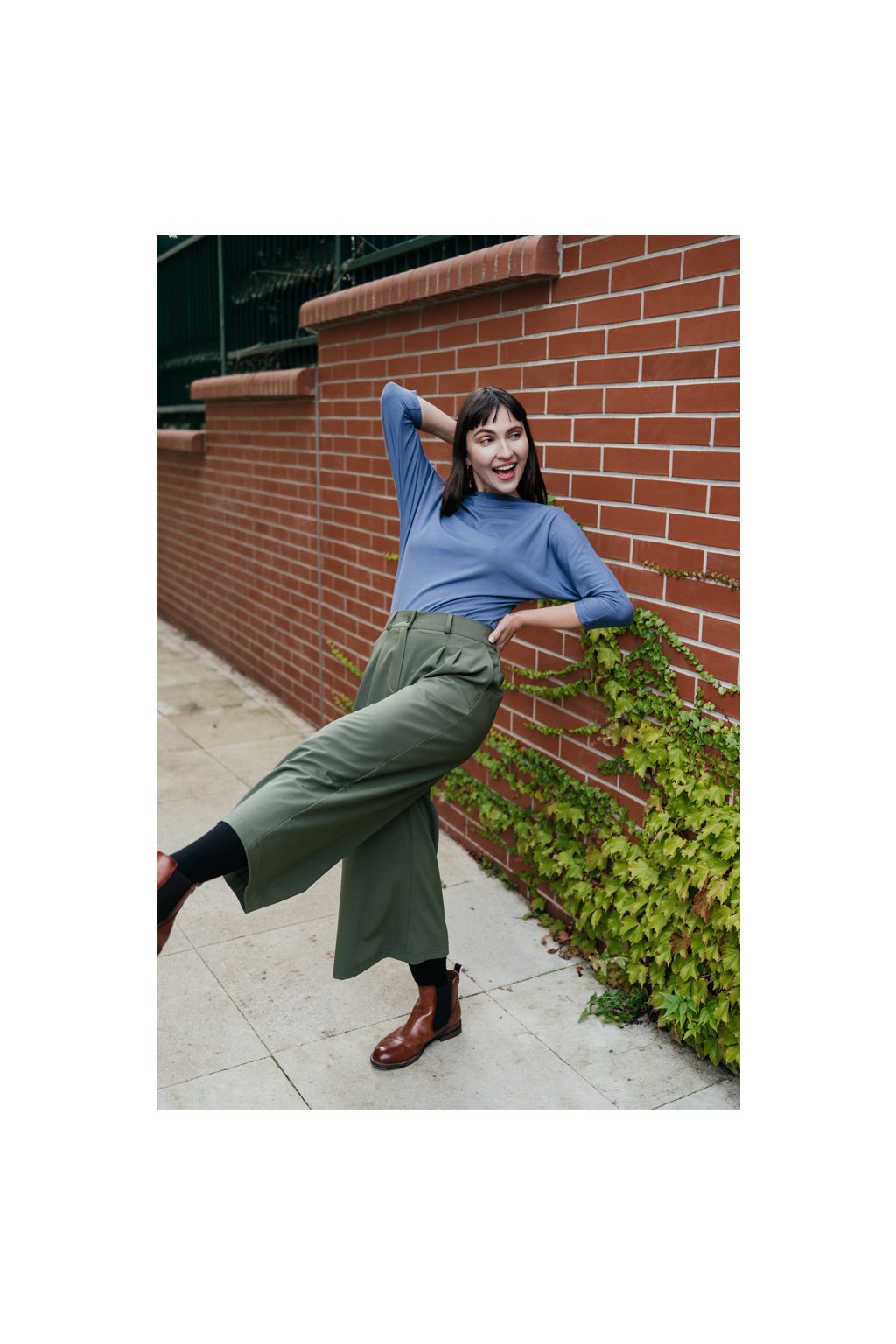 Na jaře nebo na podzim můžete culottes navrstvit s podkolenkami nebo merino punčochami. Velmi elegantně k nim vypadá černý bambusový rolák, trička Aria, kostičkovaná halenka Rosa, ale i košile Vero. Dokonalé office kombo vykouzlíte s žebrovanými tričky Rue.
