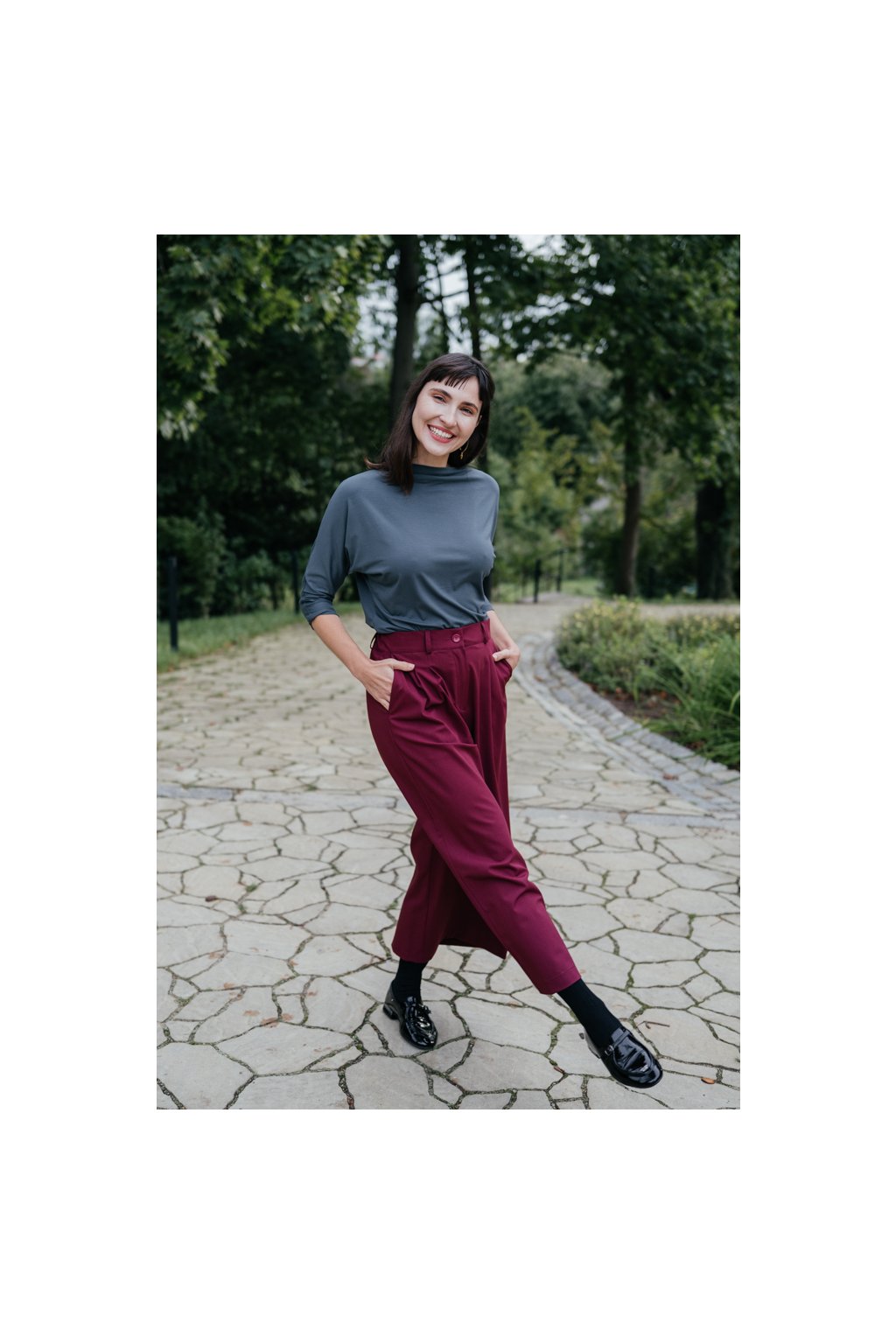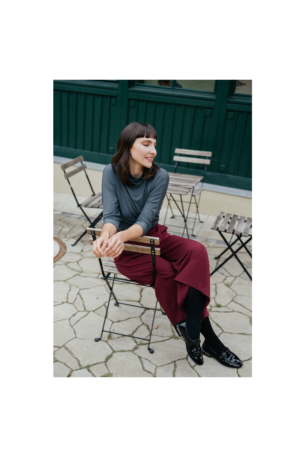 Na jaře nebo na podzim můžete culottes navrstvit s podkolenkami nebo merino punčochami. Velmi elegantně k nim vypadá černý bambusový rolák, trička Aria, kostičkovaná halenka Rosa, ale i košile Vero. Dokonalé office kombo vykouzlíte s žebrovanými tričky Rue.