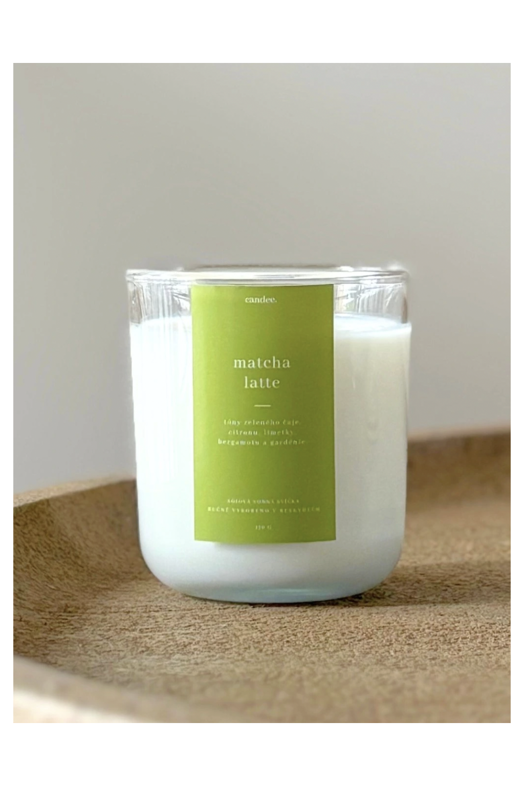 Svíčku tvoří pouze sójový vosk, dřevěný knot a vonné oleje s certifikací IFRA.
