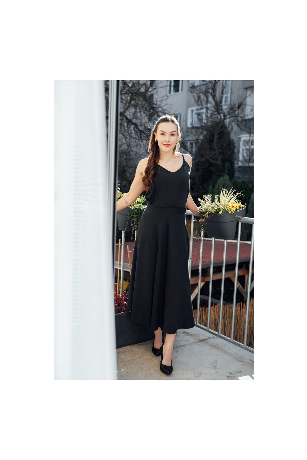 Rozevláté sukni to moc sluší s topem ze stejného materiálu. Společně vypadají jako luxusní šaty, které navíc můžete doplnit bolerkem.