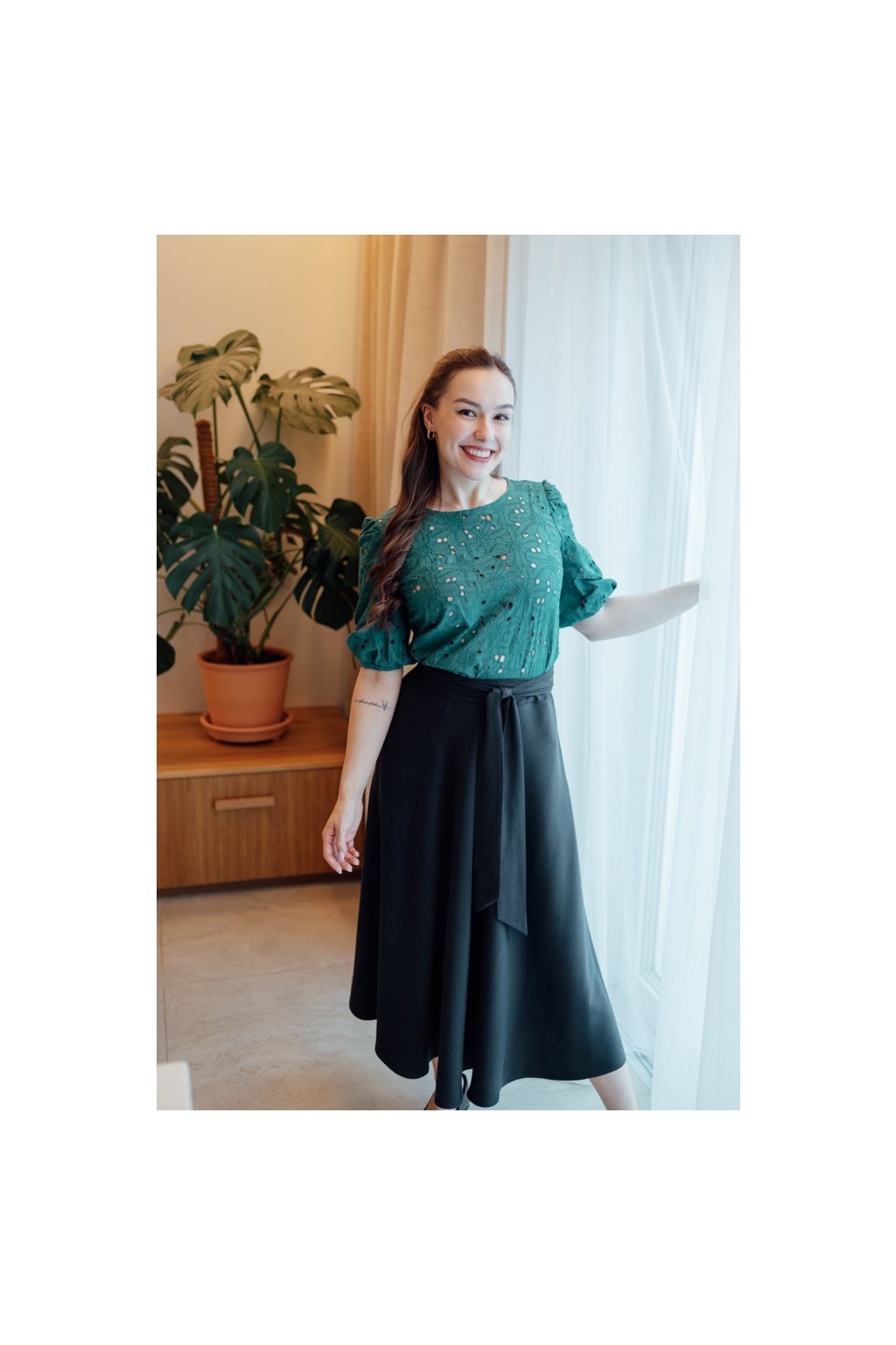 Černý pásek vyrobený ze slavnostního materiálu. Skvěle doplňuje černou slavnostní sukni Bibi.