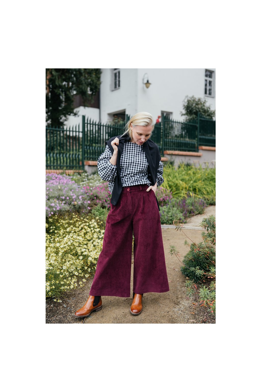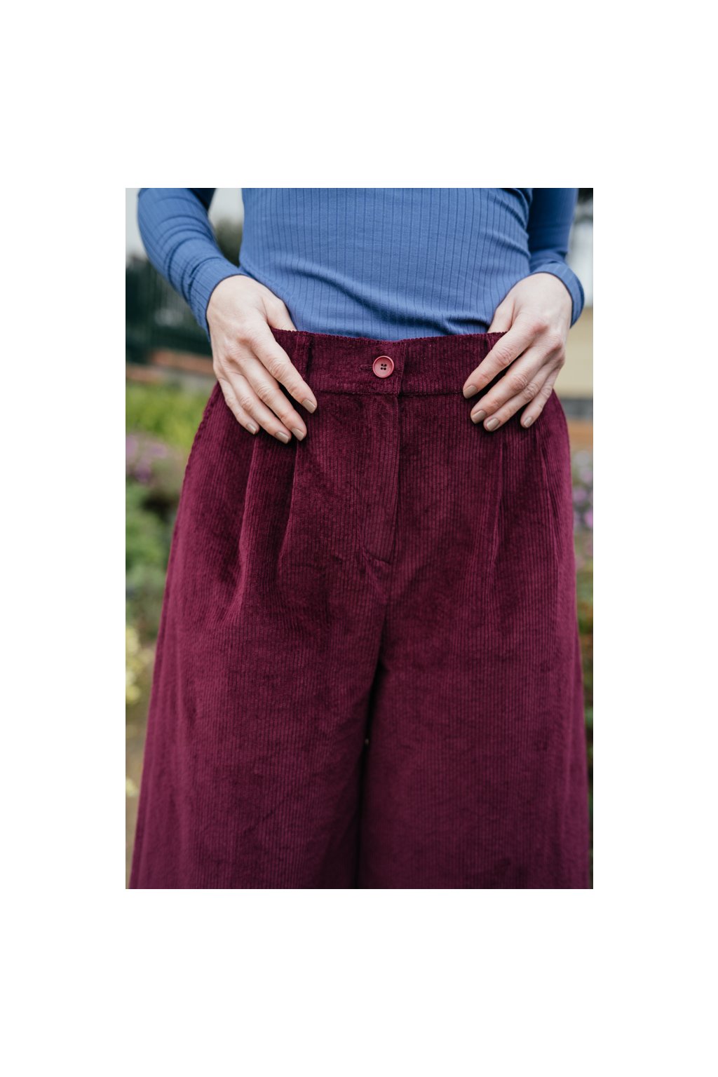 V chladnějších podzimních dnech u culottes velmi oceňuji prodlouženou délku a silnější manšestr s hrubším vzorem. Spokojená jsem také s nádhernou barvou, pohodlným a současně elegantním střihem.
