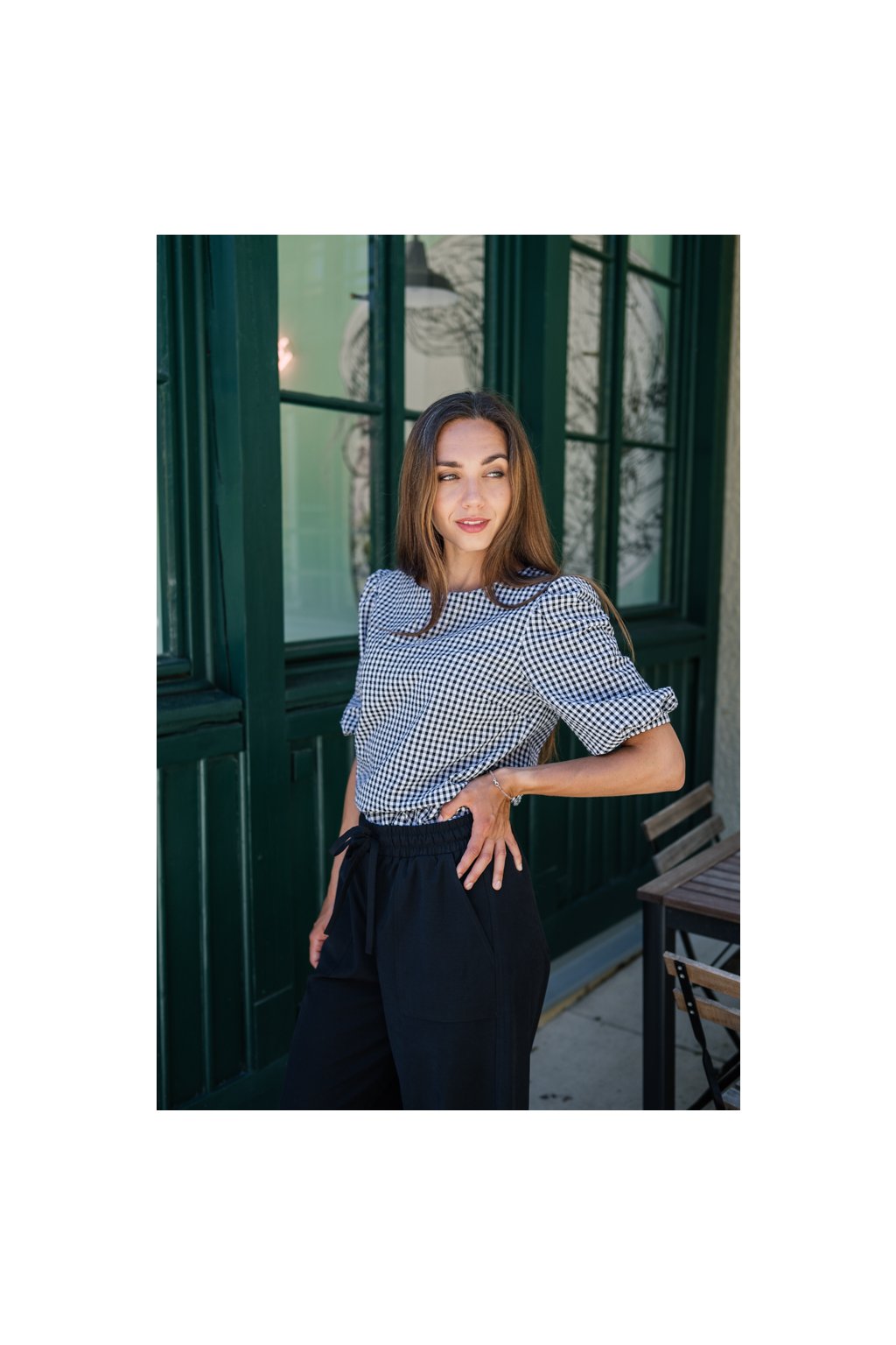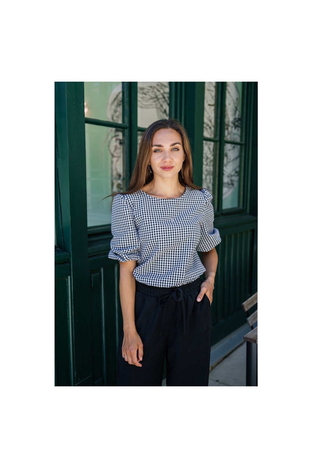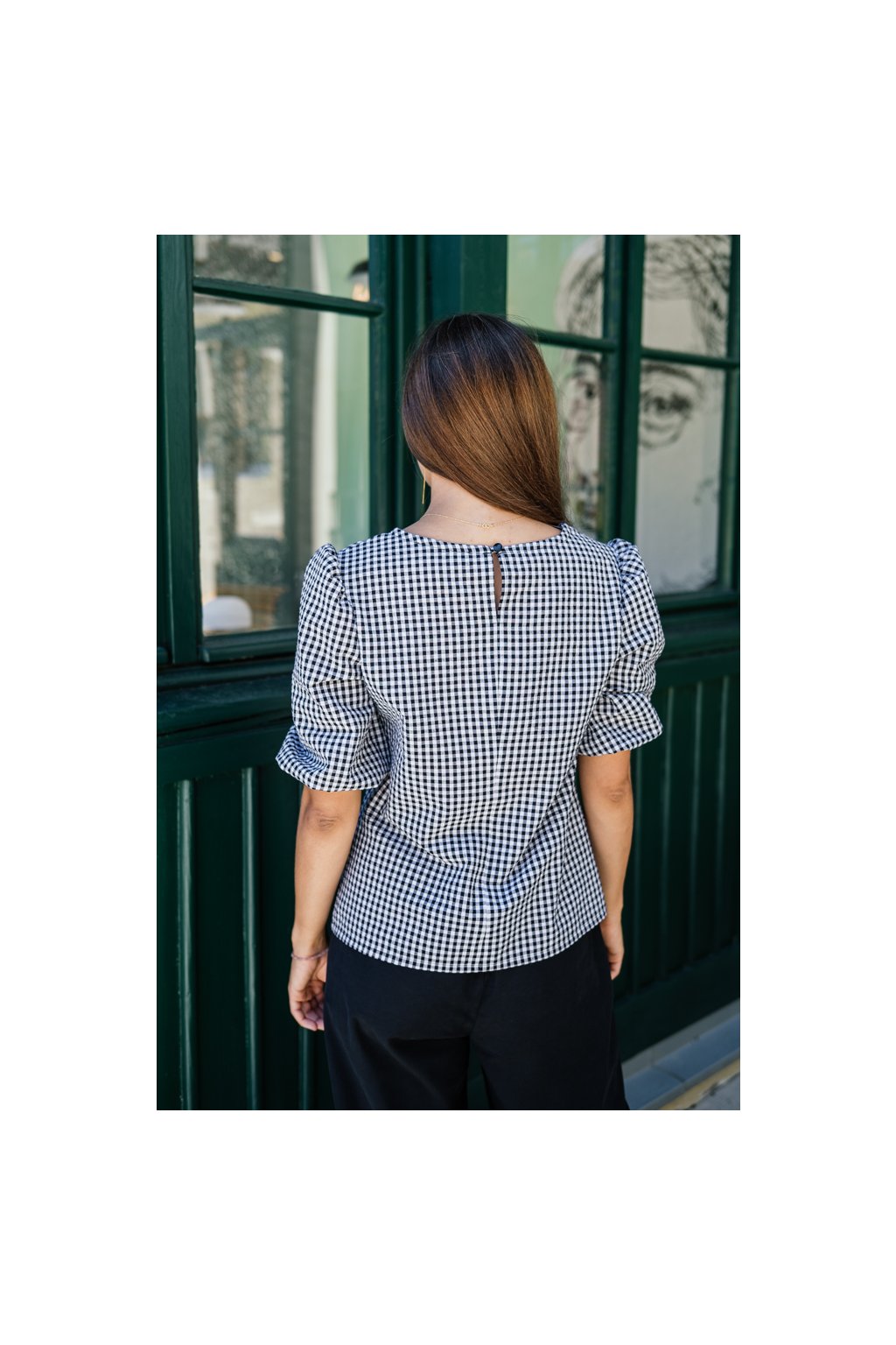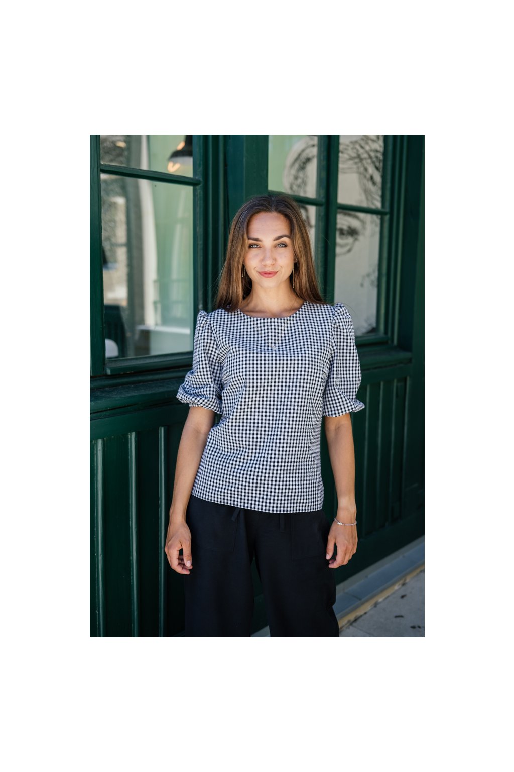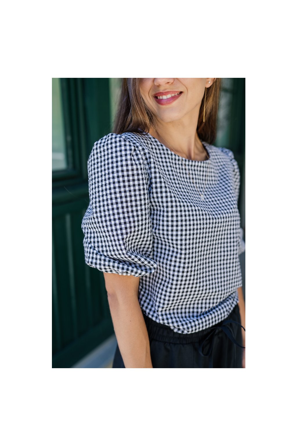 Halenka s nařasenými rukávy Rosa černobílá kostička