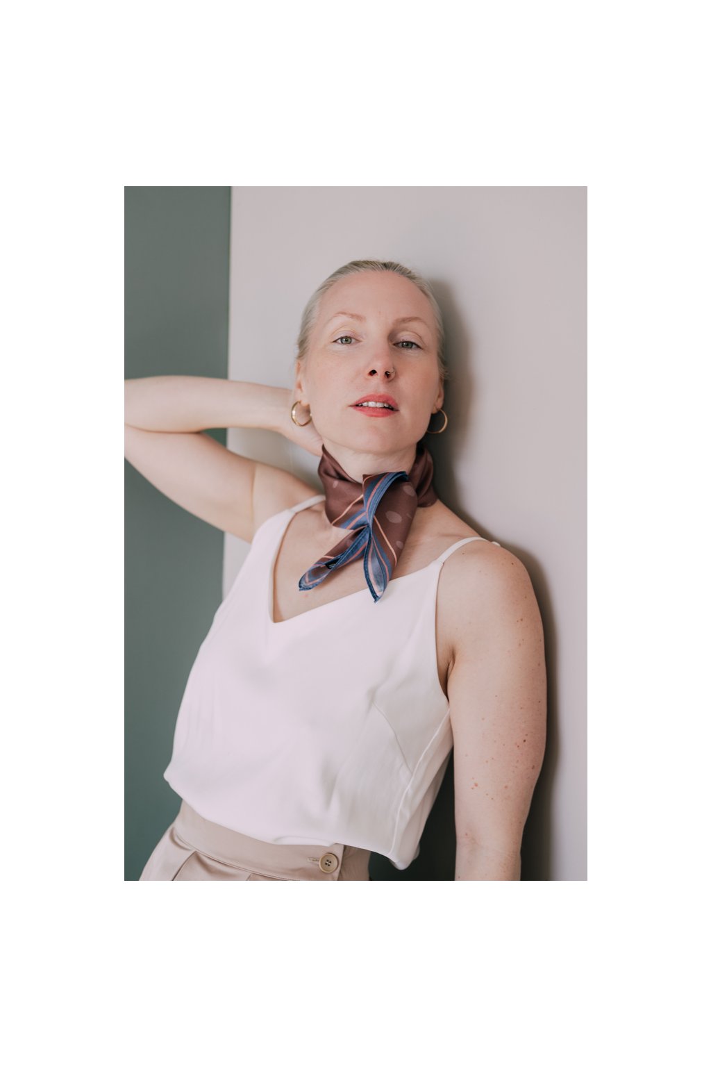 Hedvábný šátek šijeme z přírodního hedvábí, které je jemné na dotek a příjemné na nošení. Díky úpravě twill má lehce strukturovaný povrch, proto dobře drží tvar a snadno se váže. Autorský motiv je tištěný přímo na hedvábí.
