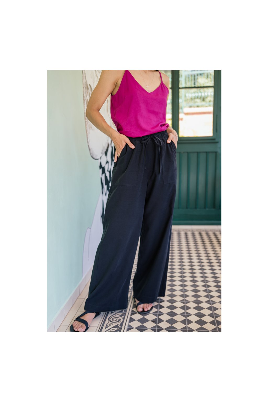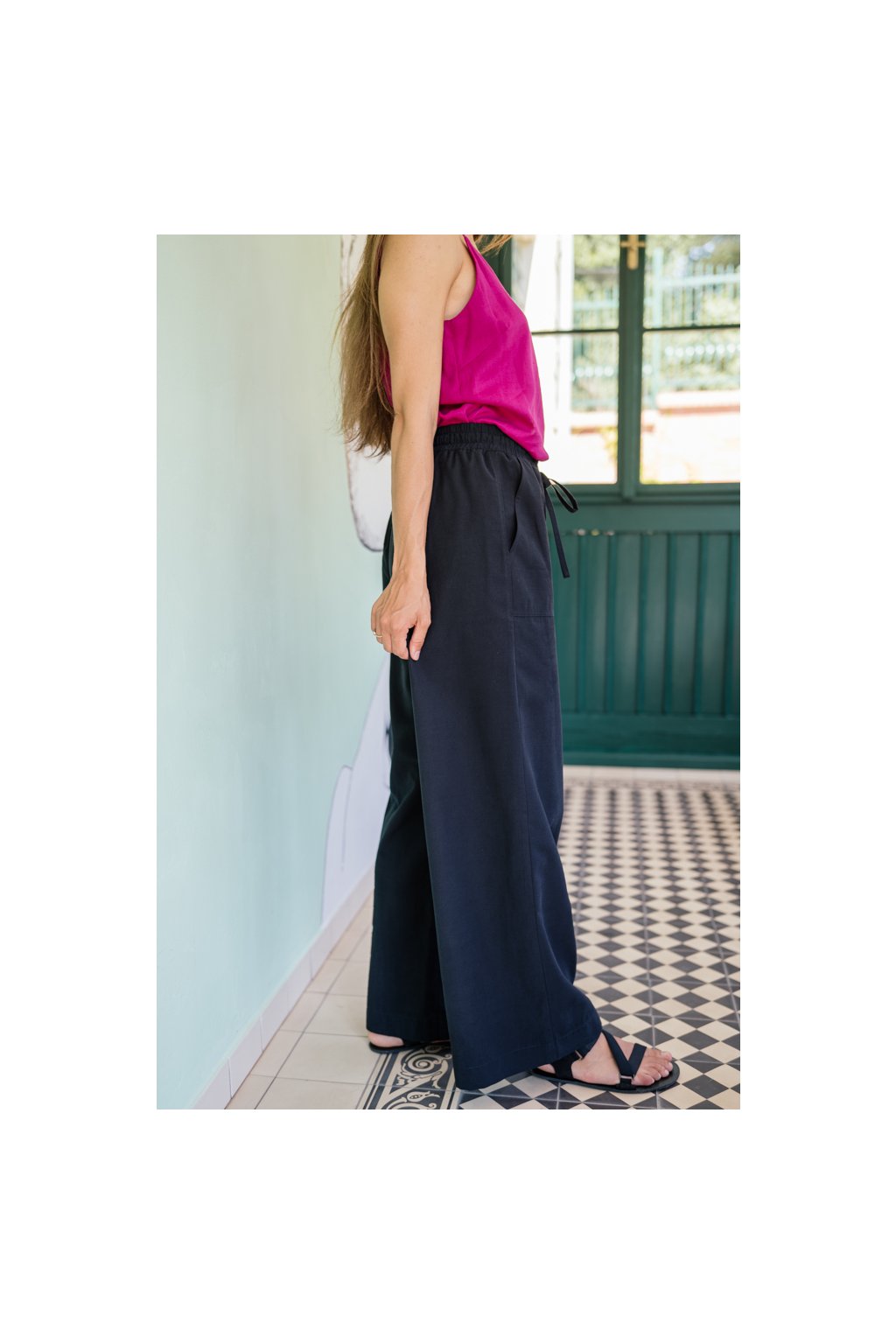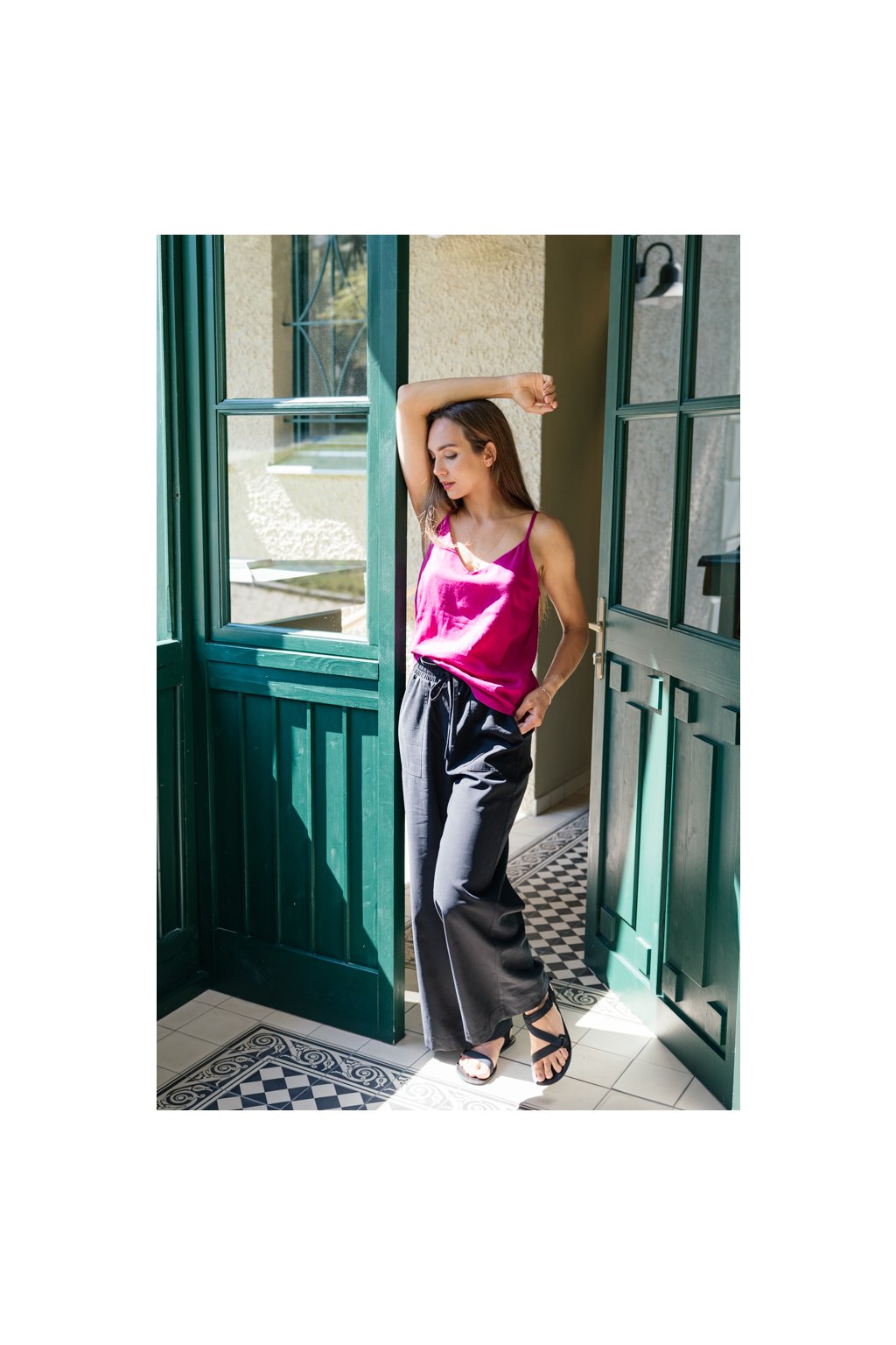 Materiál: 88 % viskóza, 12 % polyester, látka má lehce strukturovanou texturu díky způsobu tkaní (tzv. "bubble slub").