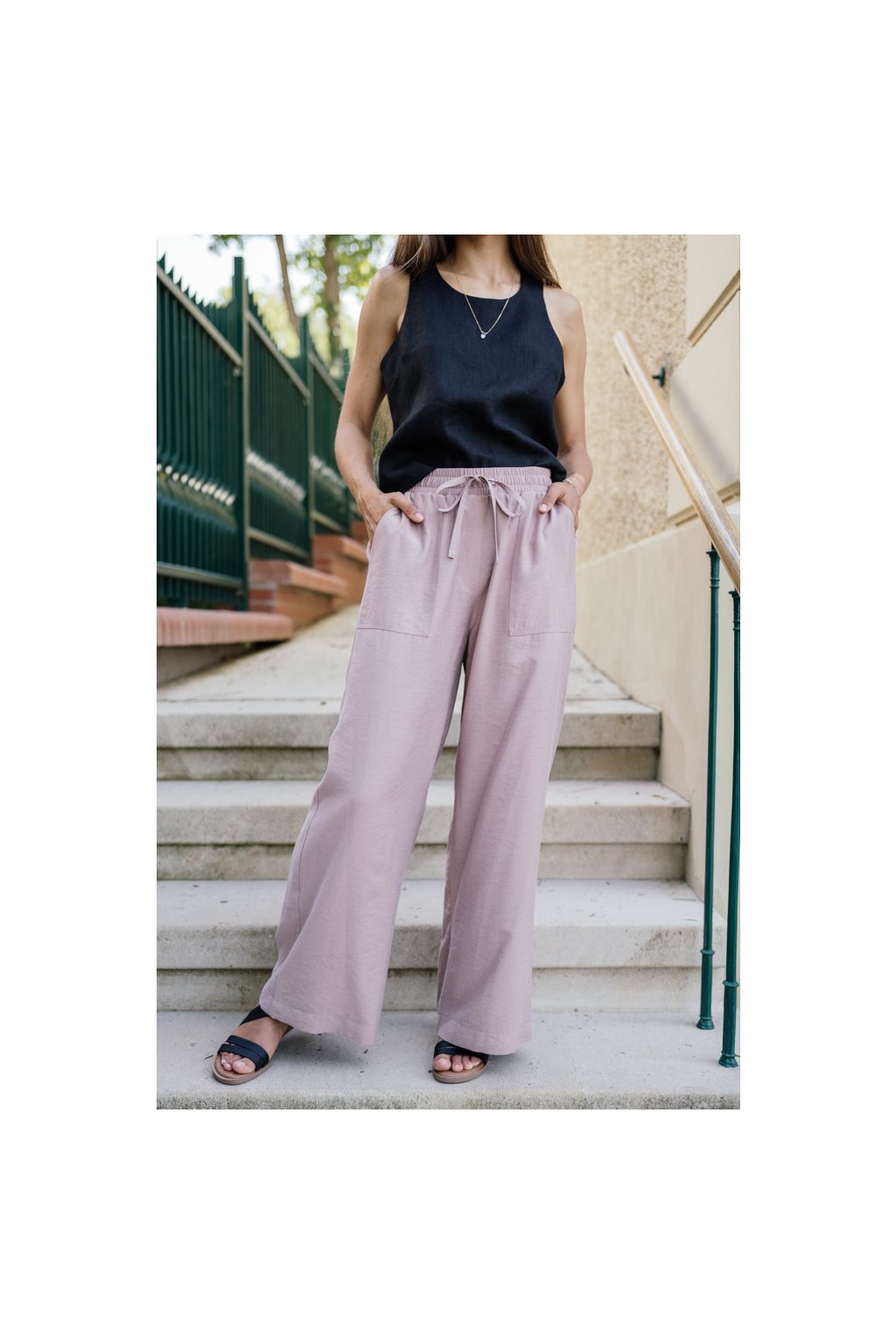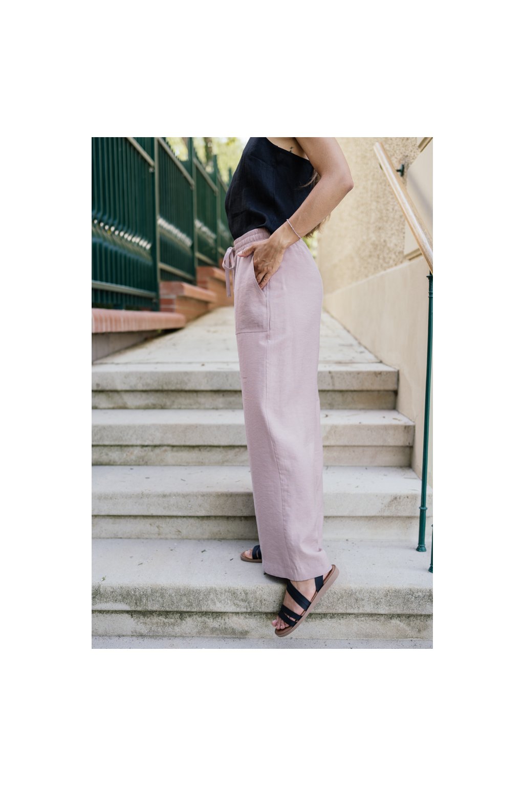 Materiál: 88 % viskóza, 12 % polyester, látka má lehce strukturovanou texturu díky způsobu tkaní (tzv. "bubble slub").