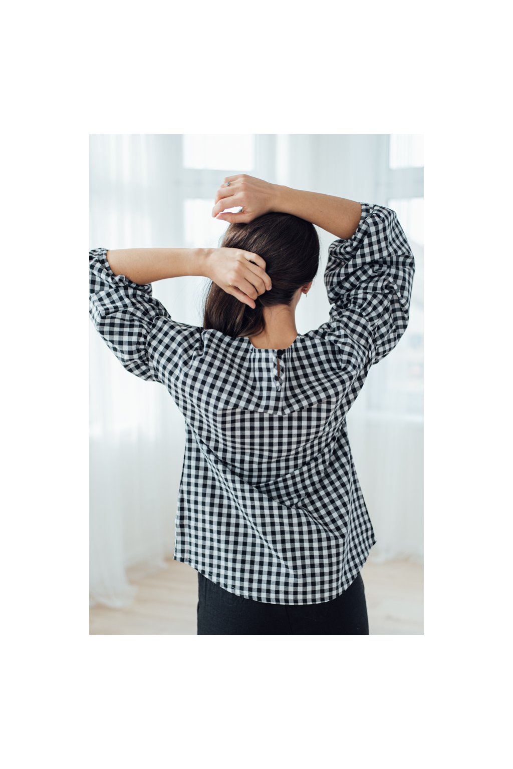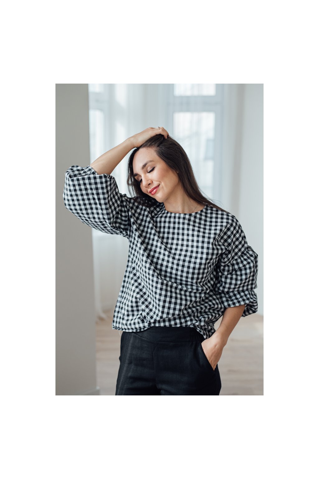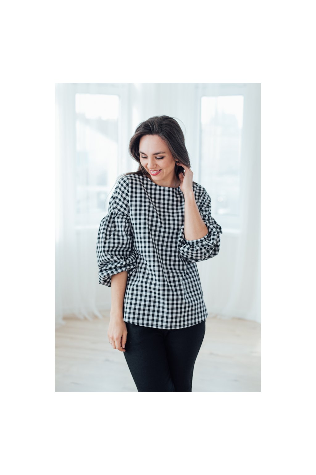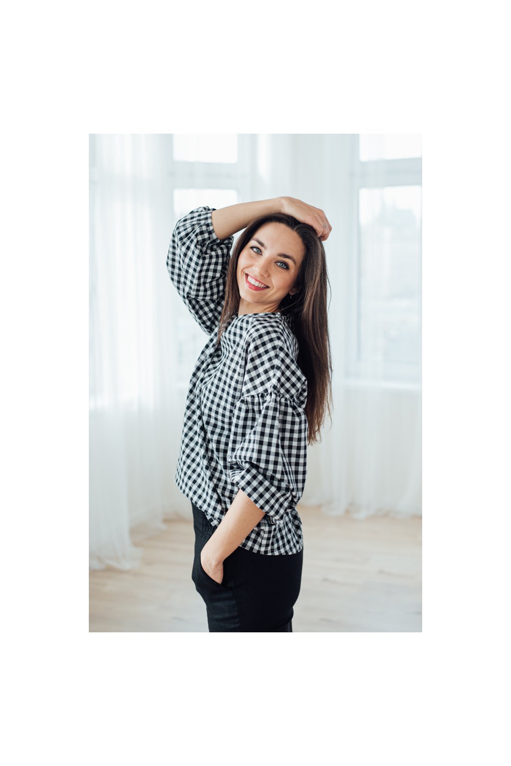 Halenka je krásná, precizně ušitá. Oceňuji střih, je perfektní pro mou postavu. Přitahuje pozornost k oblasti prsou a boků, nerozšiřuje v ramenou ani v těle a na rozdíl od halenek s nabíráním přímo na rameni z vás tato neudělá zápasníka ani selku. :) Nosím velikost XS, zde jsem volila XXS a dobře jsem udělala. I ve velikosti XXS je halenka dostatečně volná v těle.