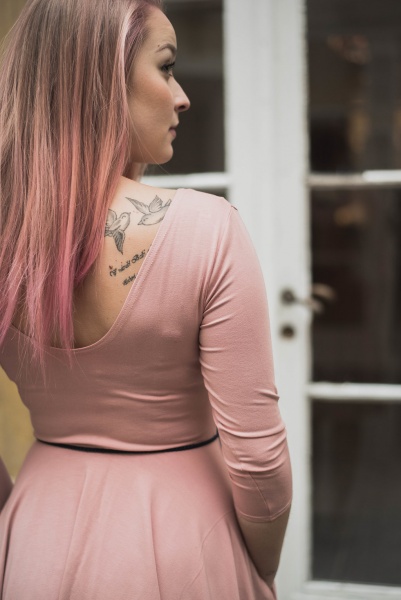 Modely: hořčicové a tartanové propínací šaty THEA, bambusové šaty Osudová Dorothea a Amabile (starorůžová, modrá, bílá, černá) a osudová Rozálie (starorůžová), bambusová trička Rozálie, Dorothea, Adina, Josefina, Agnes, kolové sukně STELLA hořčicová a zelená sukně s protiskladem INGRID