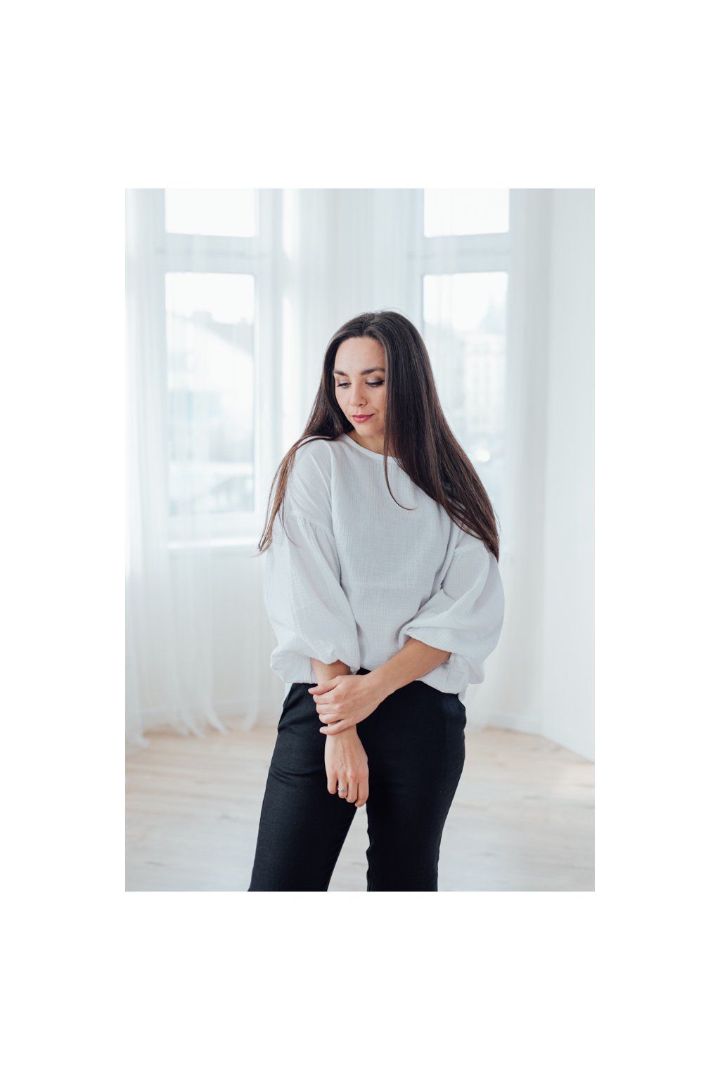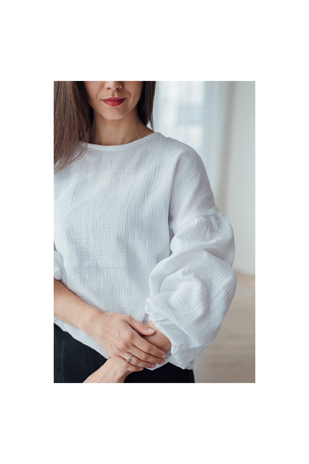 Halenku můžete nosit zastrčenou v sukni, nebo částečně zastrčenou v kalhotách.