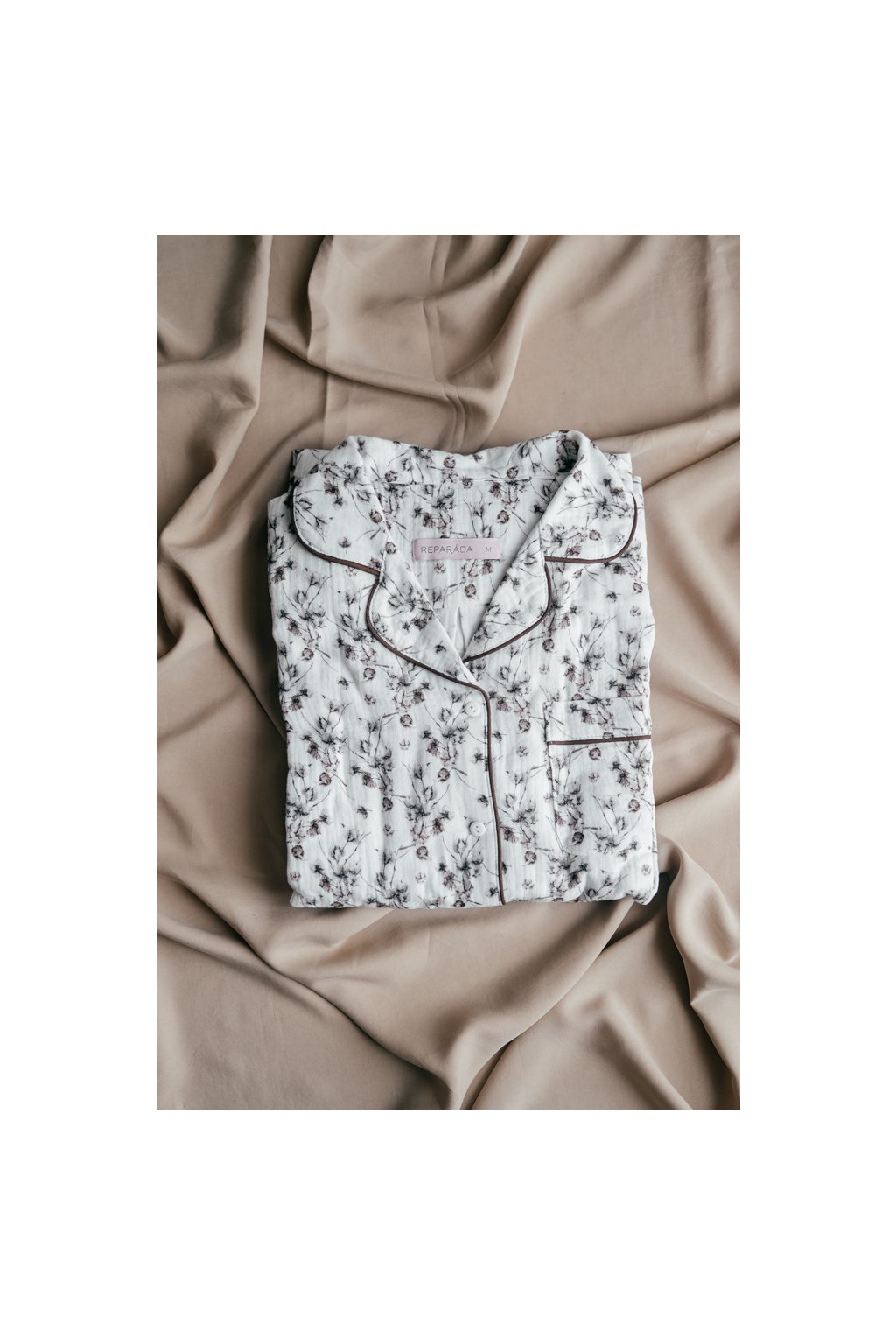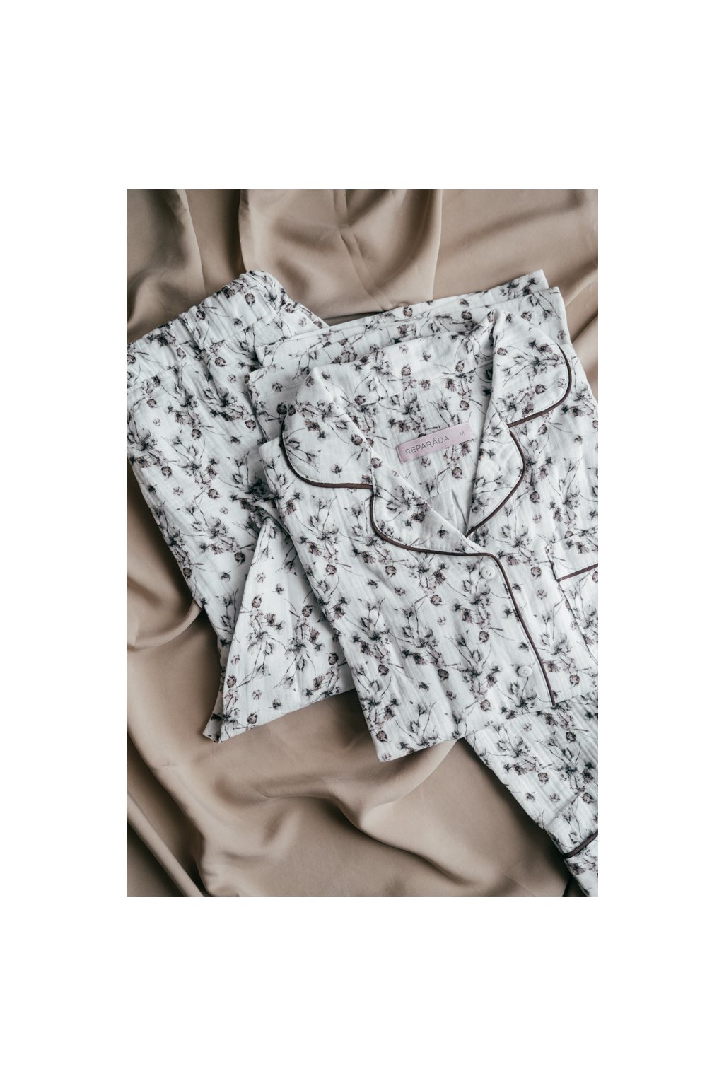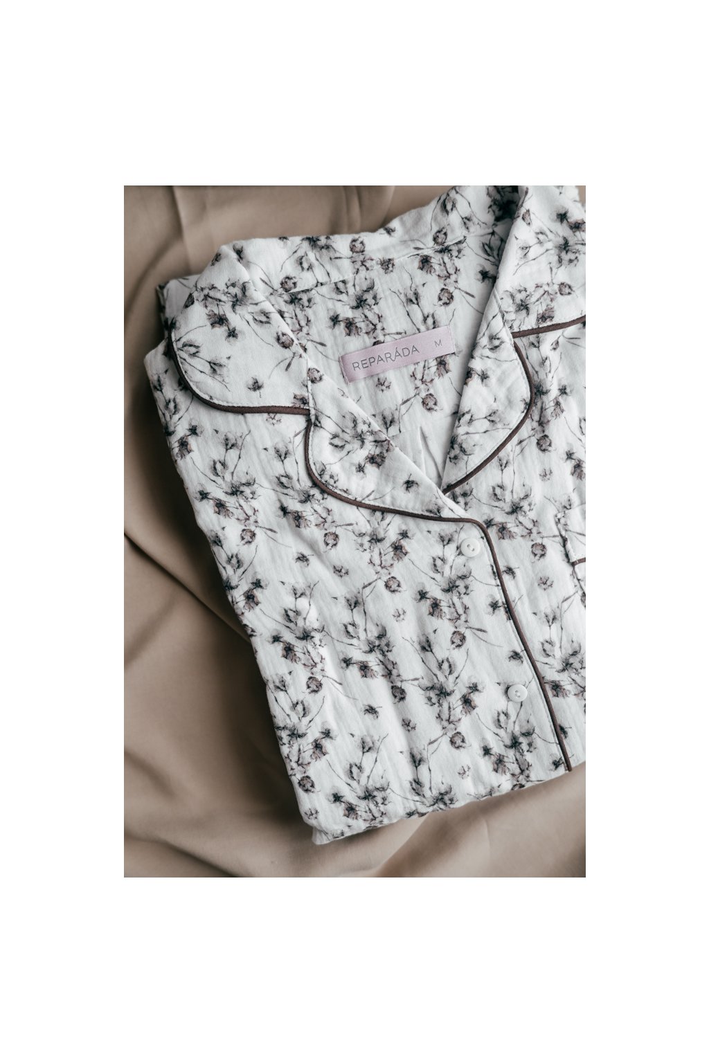 Pyžamo je ozdobené paspulkou. Knoflíky jsou vyrobené v České republice.
