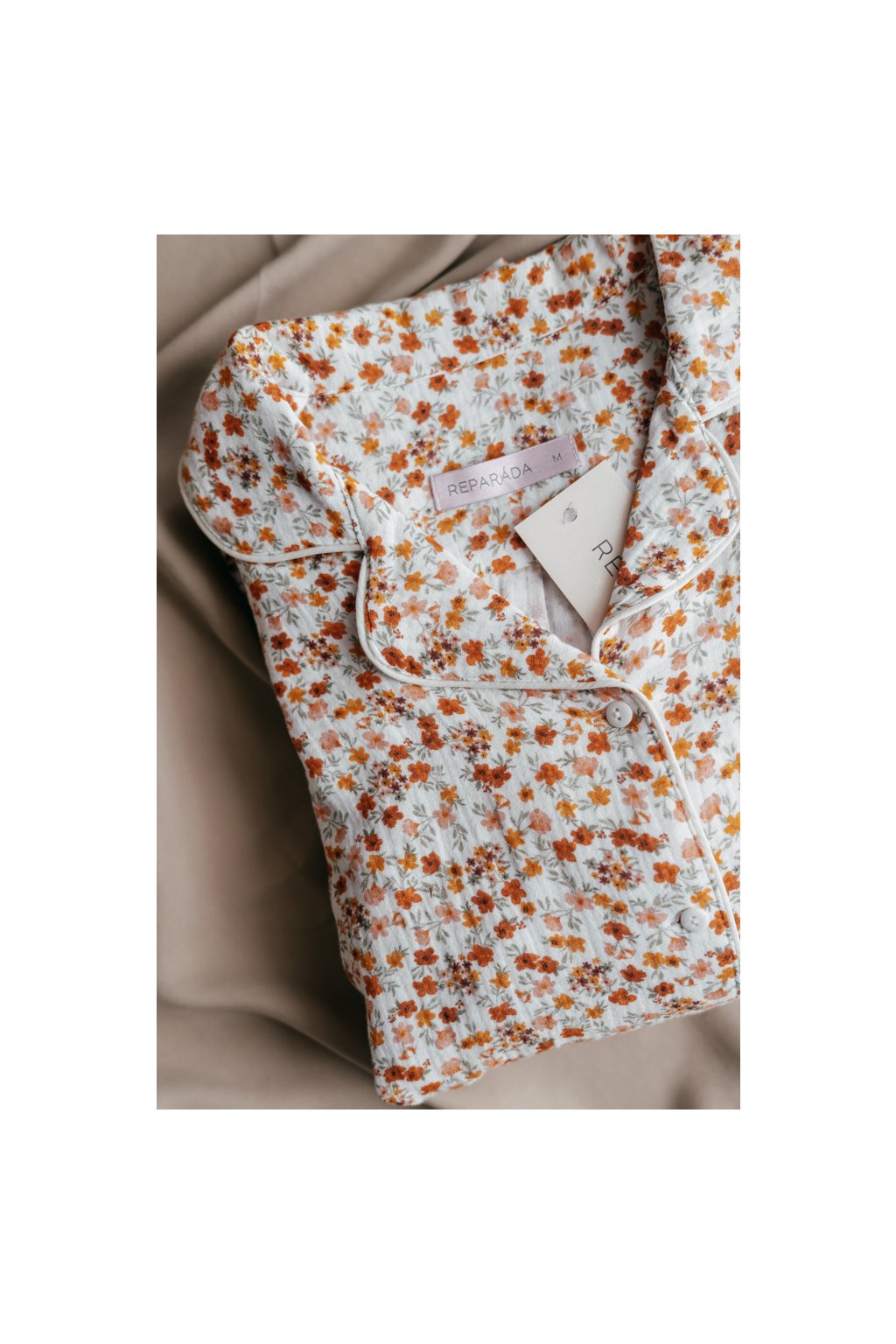 Na kutě: Mušelínové klasické pyžamo Oranžová kvítka