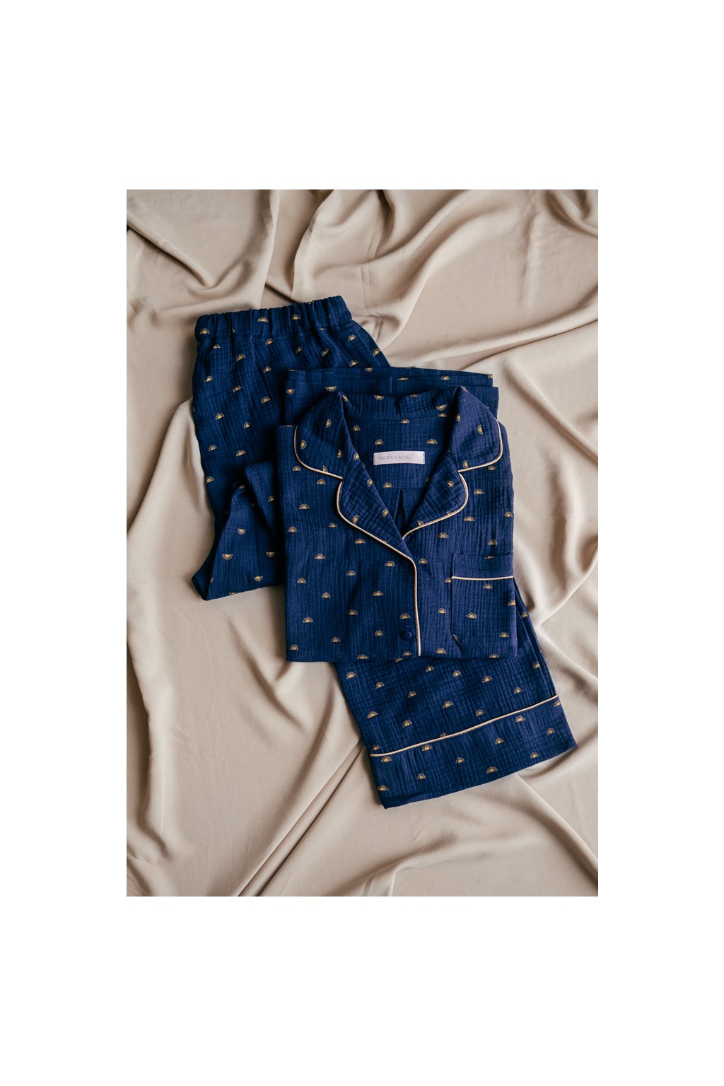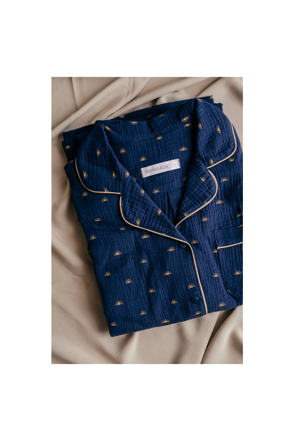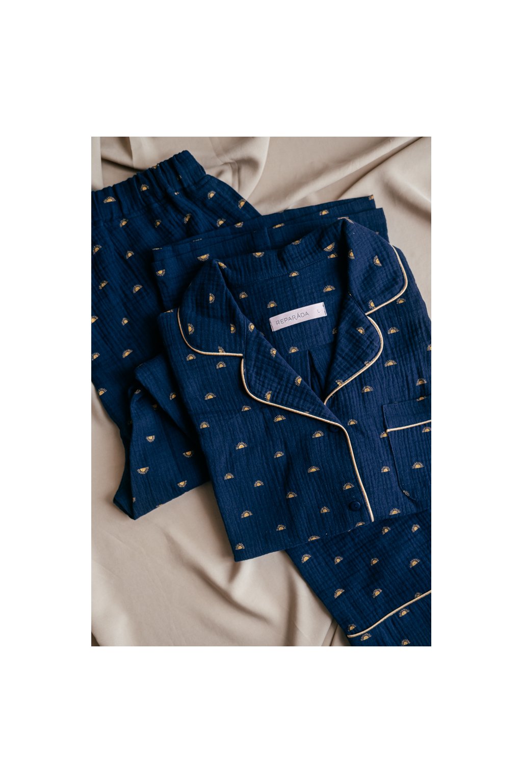 Pyžamo je ozdobené paspulkou. Knoflíky jsou vyrobené v České republice.