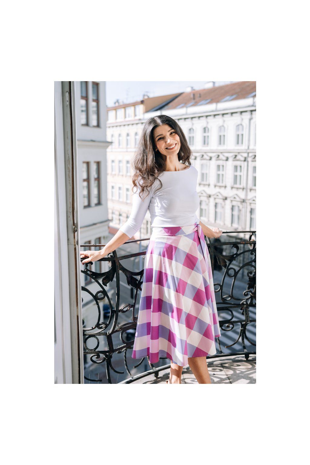 Sukně Bibi midi Fialovo-růžové kostky