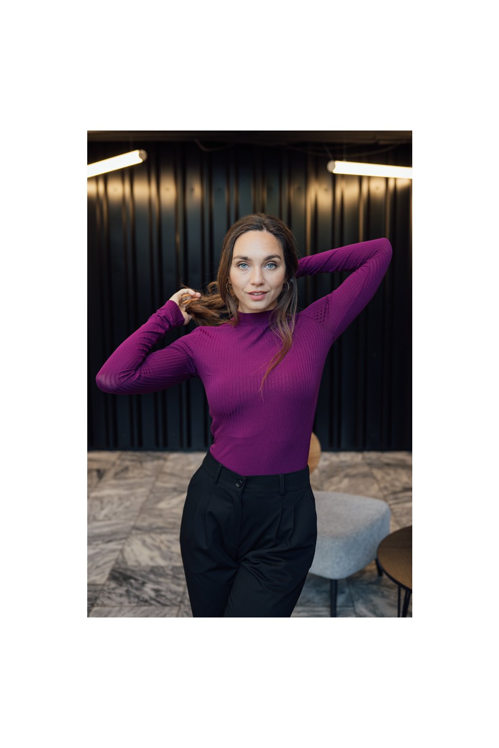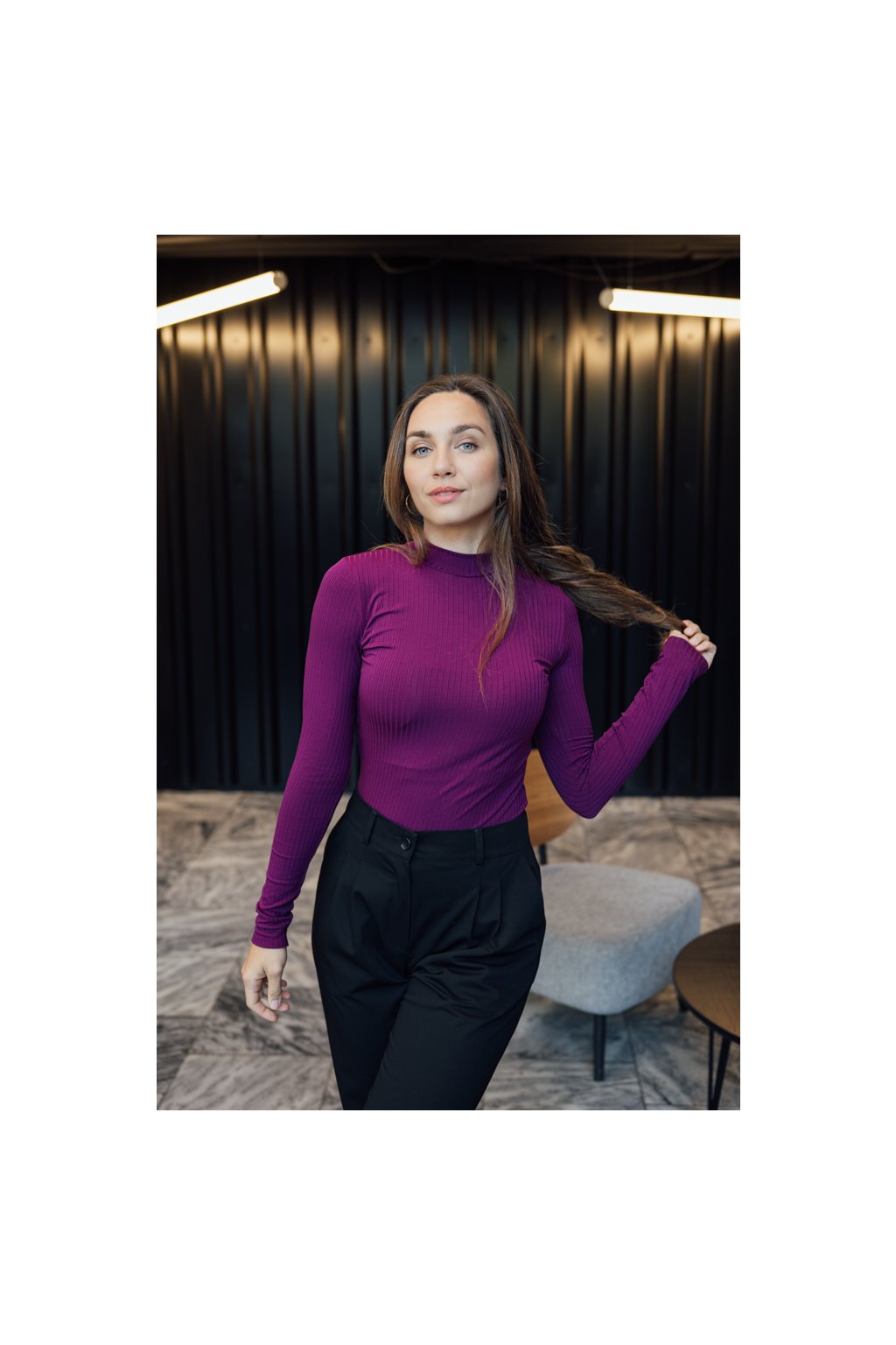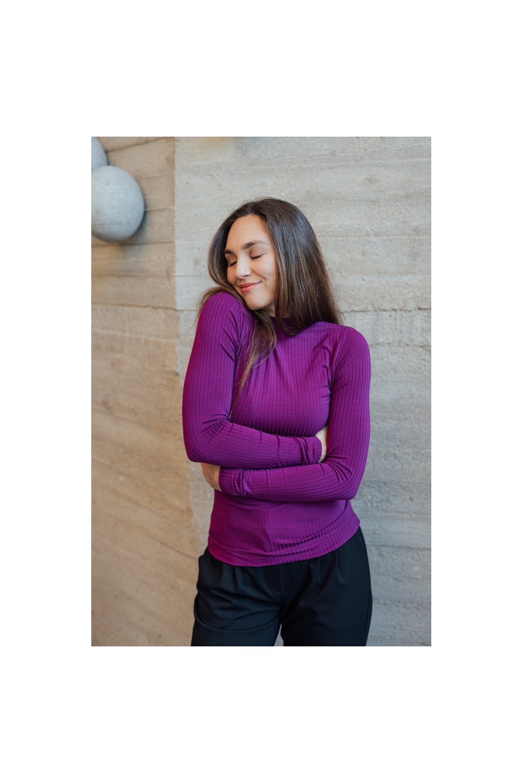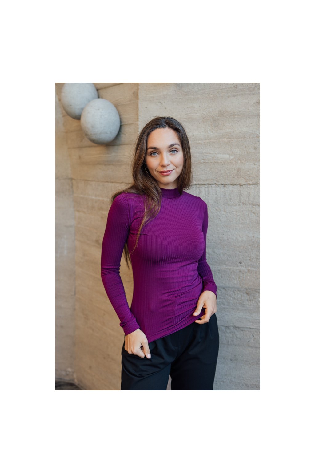 Žebrované tričko Rue s dl. rukávem švestkově fialové